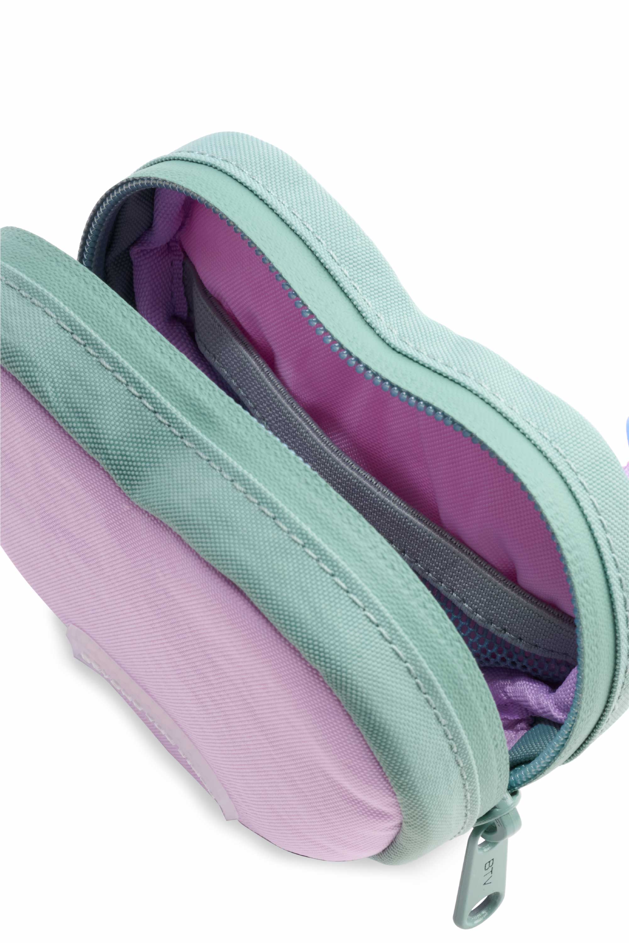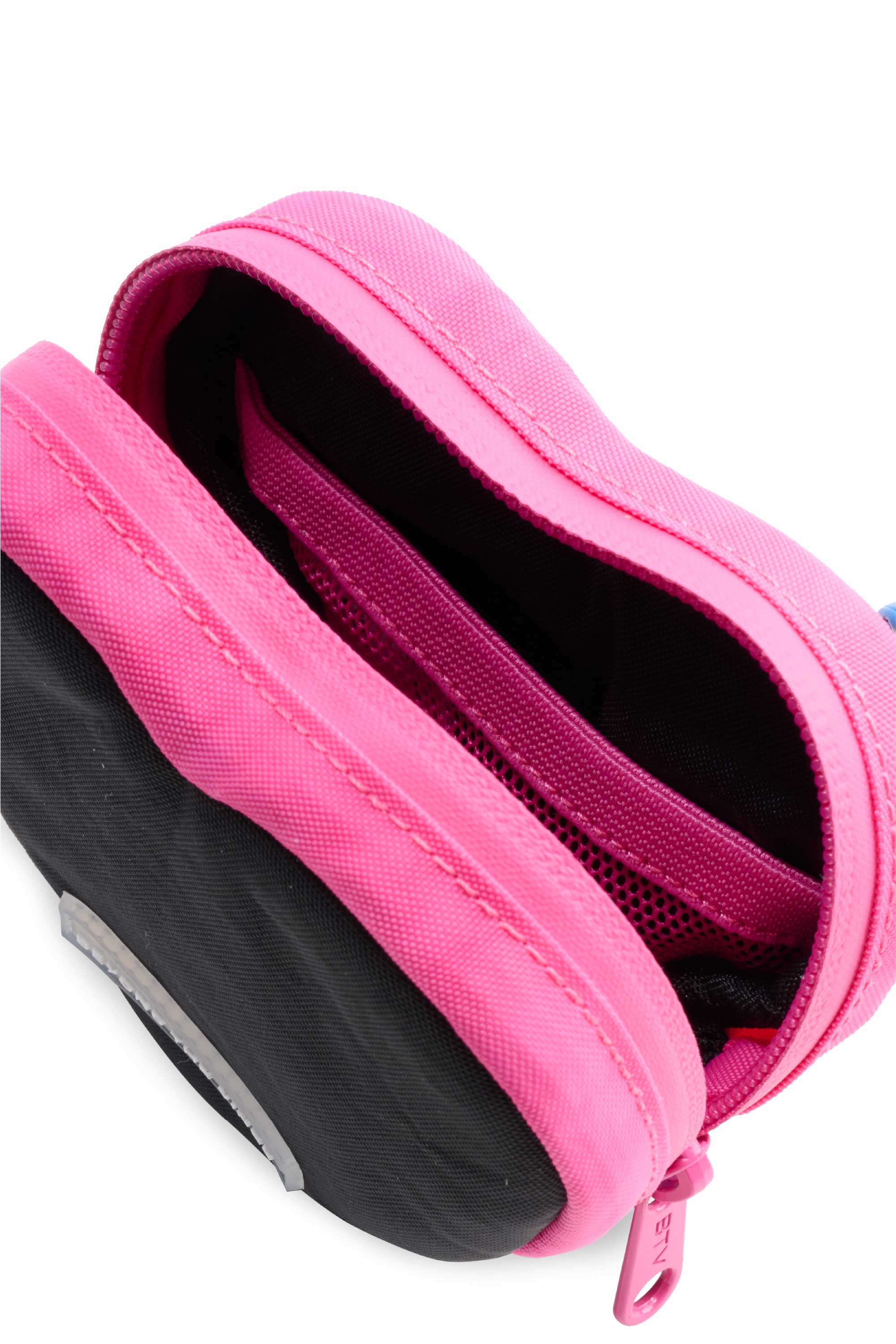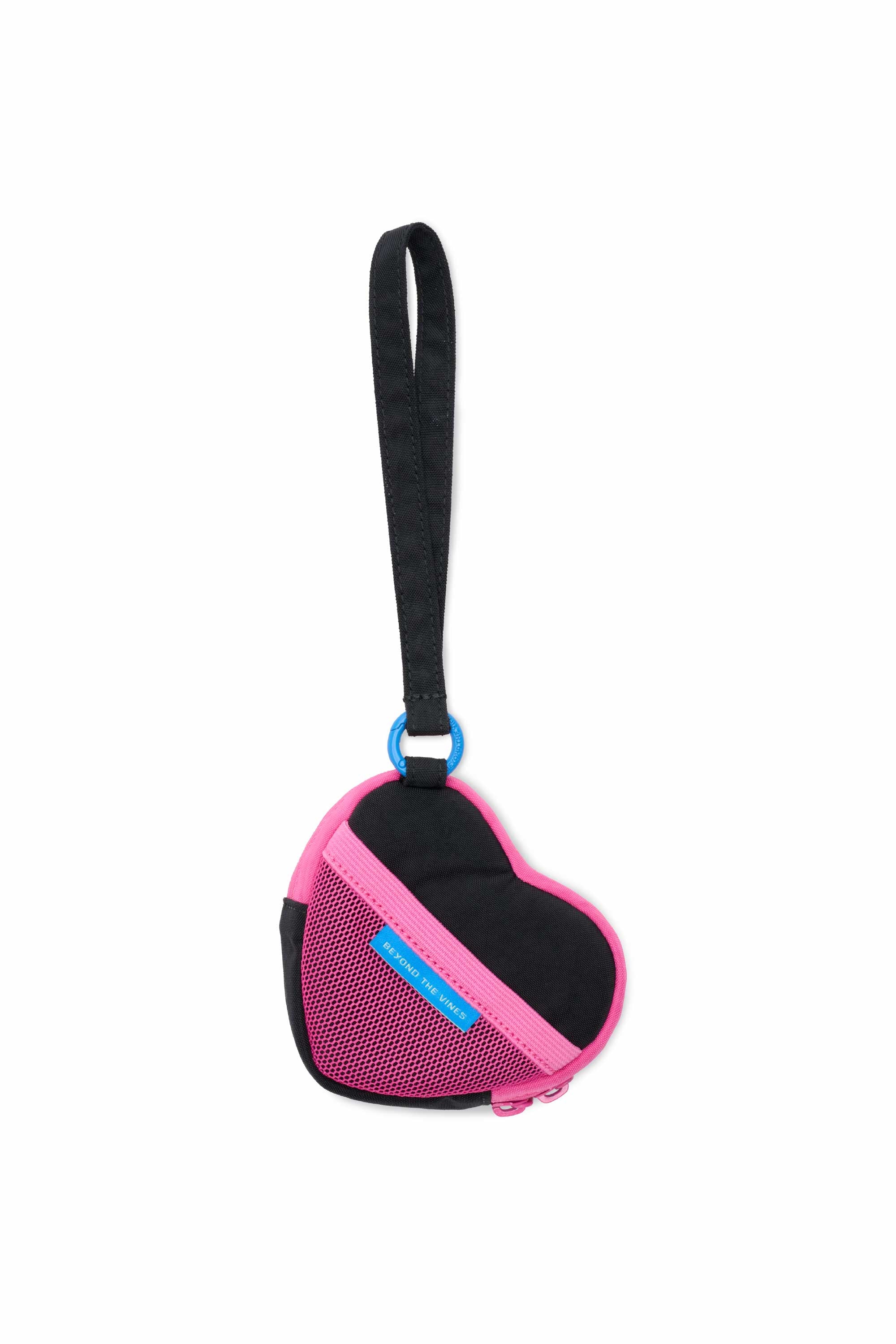 Perfect for clipping onto your bags or clothing for extra storage and easier access to your smaller items, this colourblock heart pouch is designed with a zipper closure and inner pockets. It is finished with a wrist loop and an engineer blue detachable carabiner.