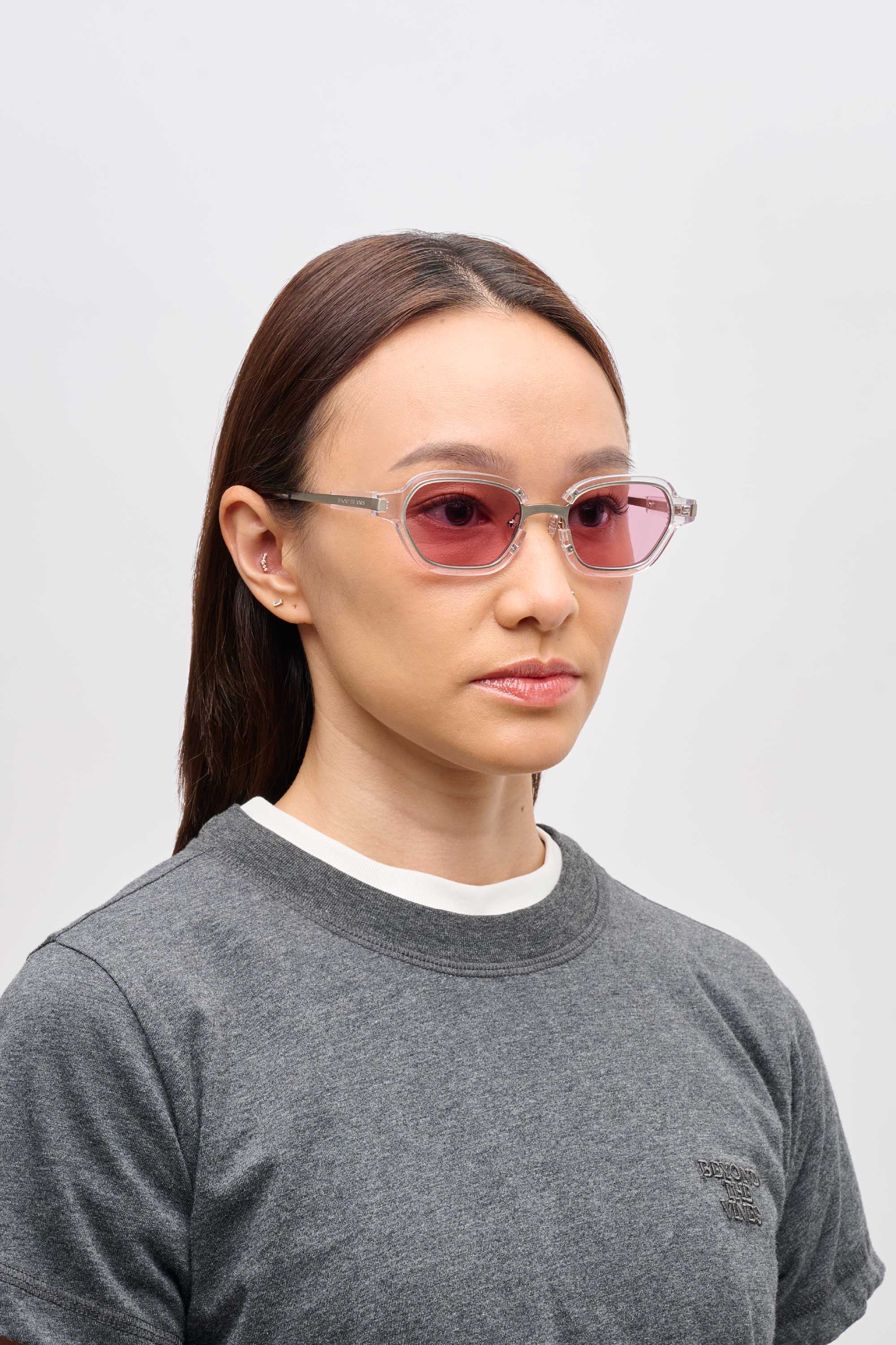 Contour features a slim rectangular silhouette with soft tinted lenses, finished with subtle metal detailing and understated branding on the arms for a clean, modern look. Comes with a custom aluminium case for easy storage and protection.