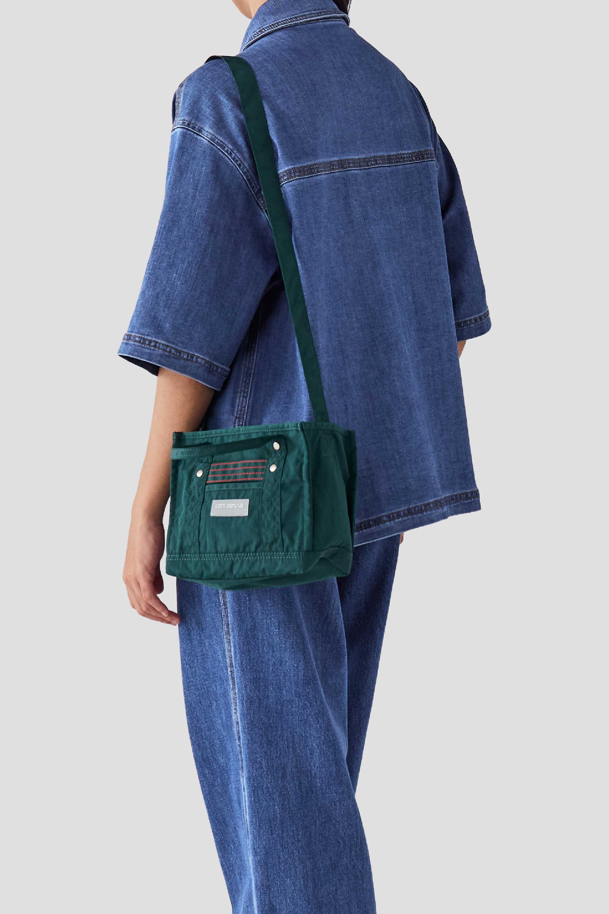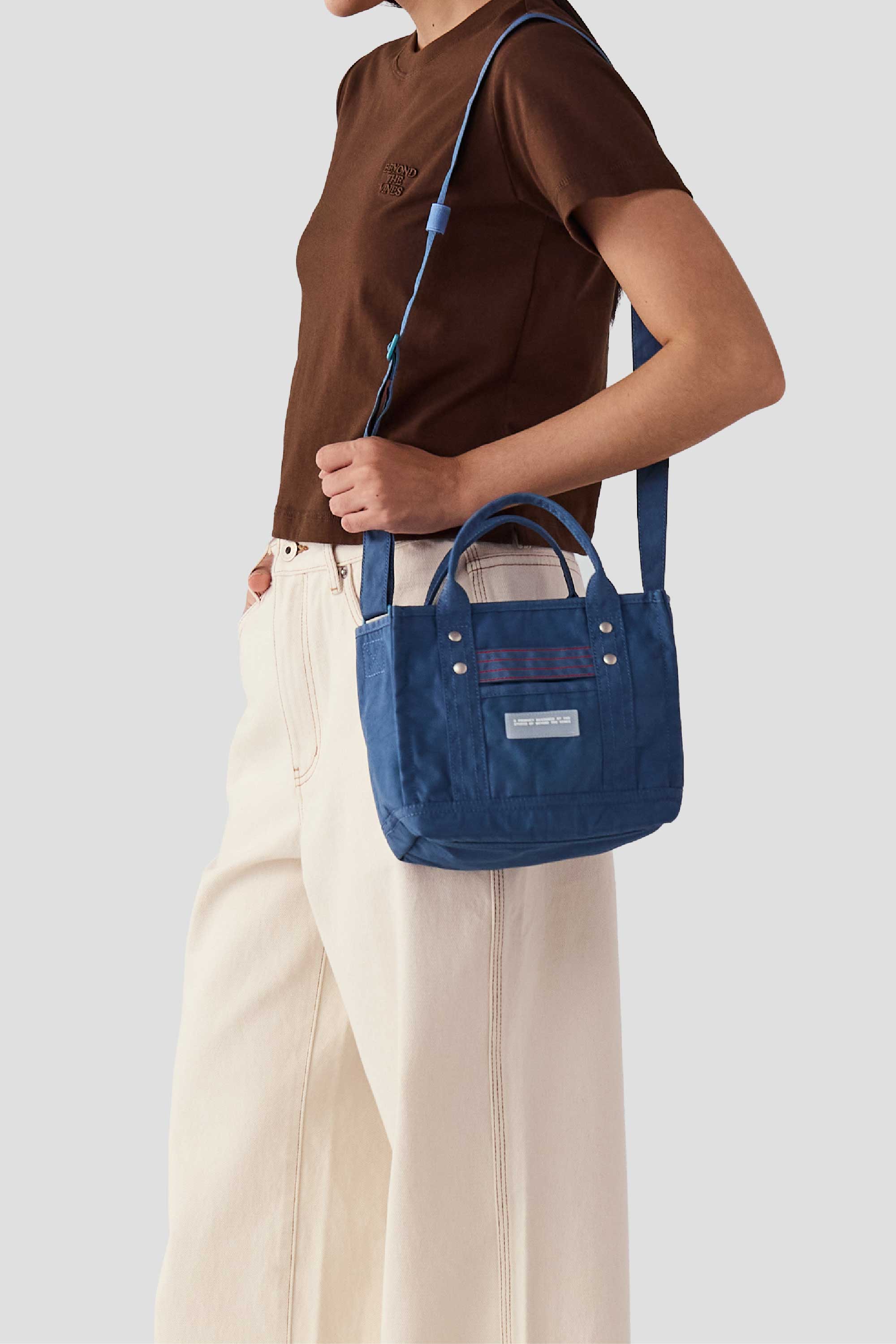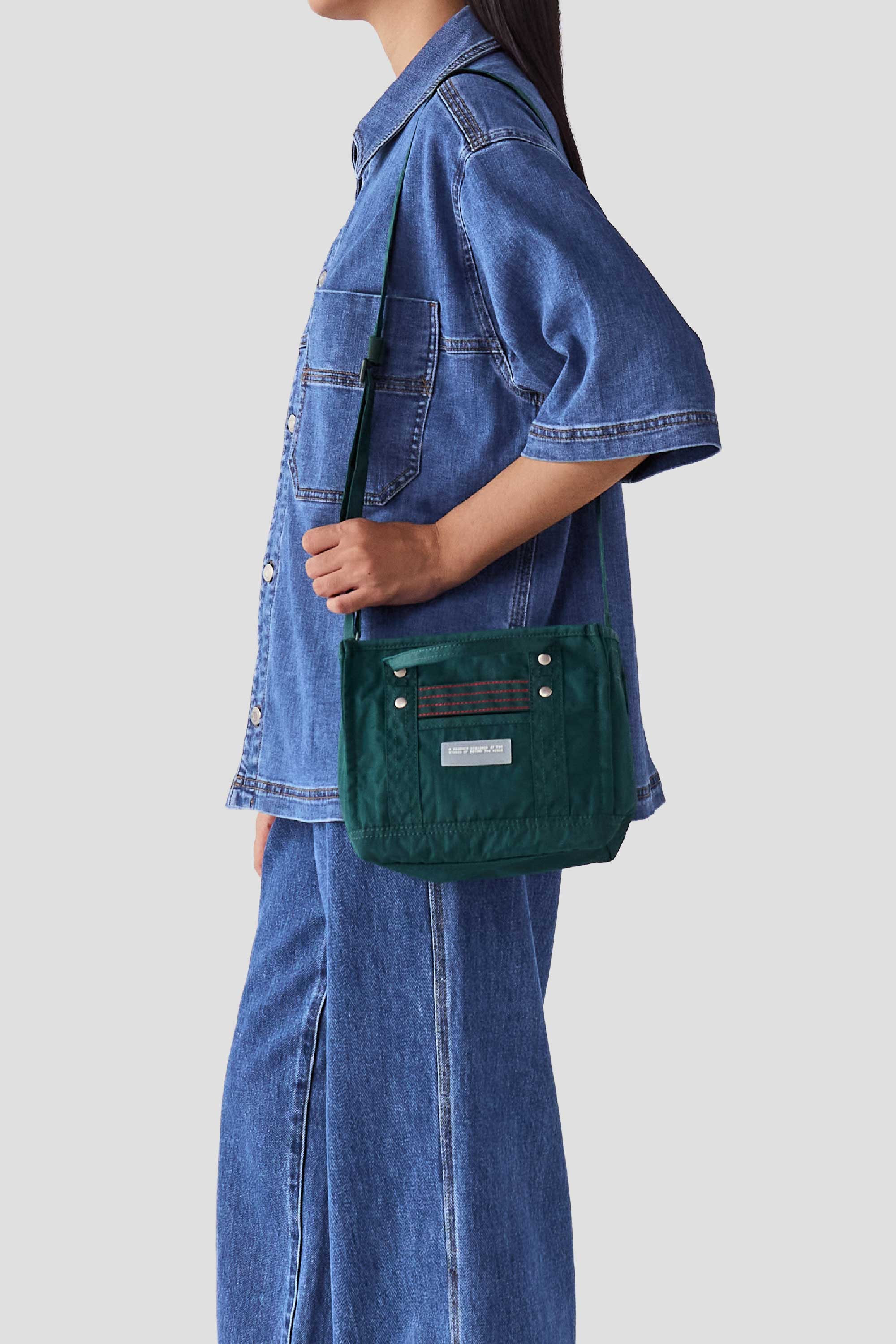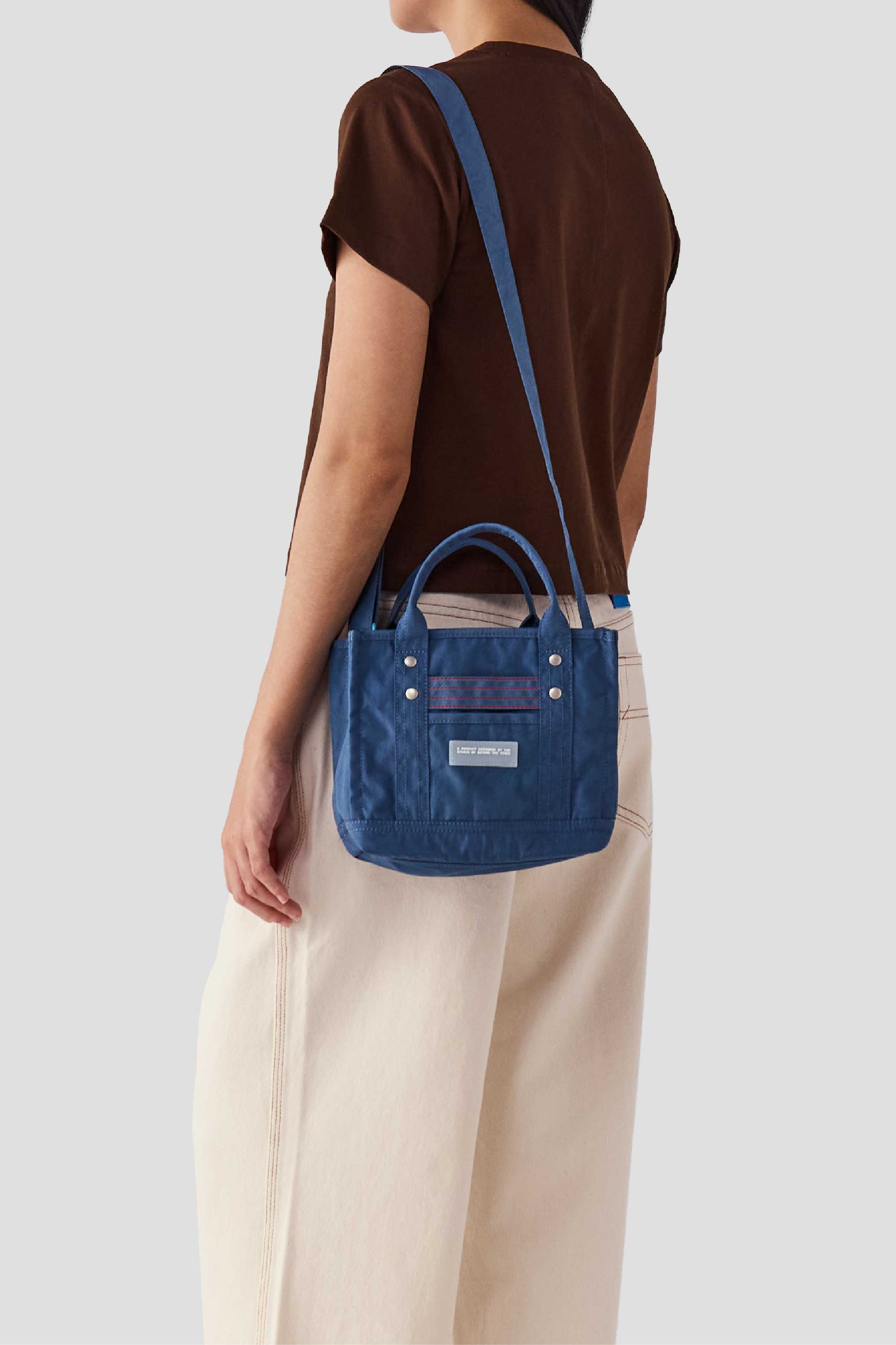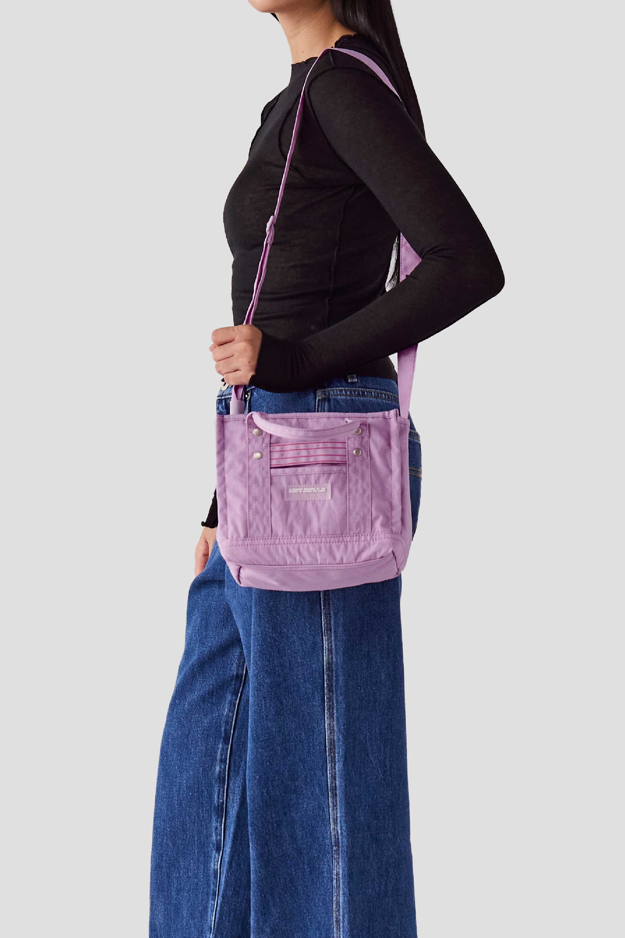 Designed to be functional and durable, this structured bag is made from water-resistant nylon, has short handles, a long adjustable strap, and is finished with a zipper closure. Featuring our product rubber label and contrast stitching details on the front, this mini bag fits your phone and essentials for the day.