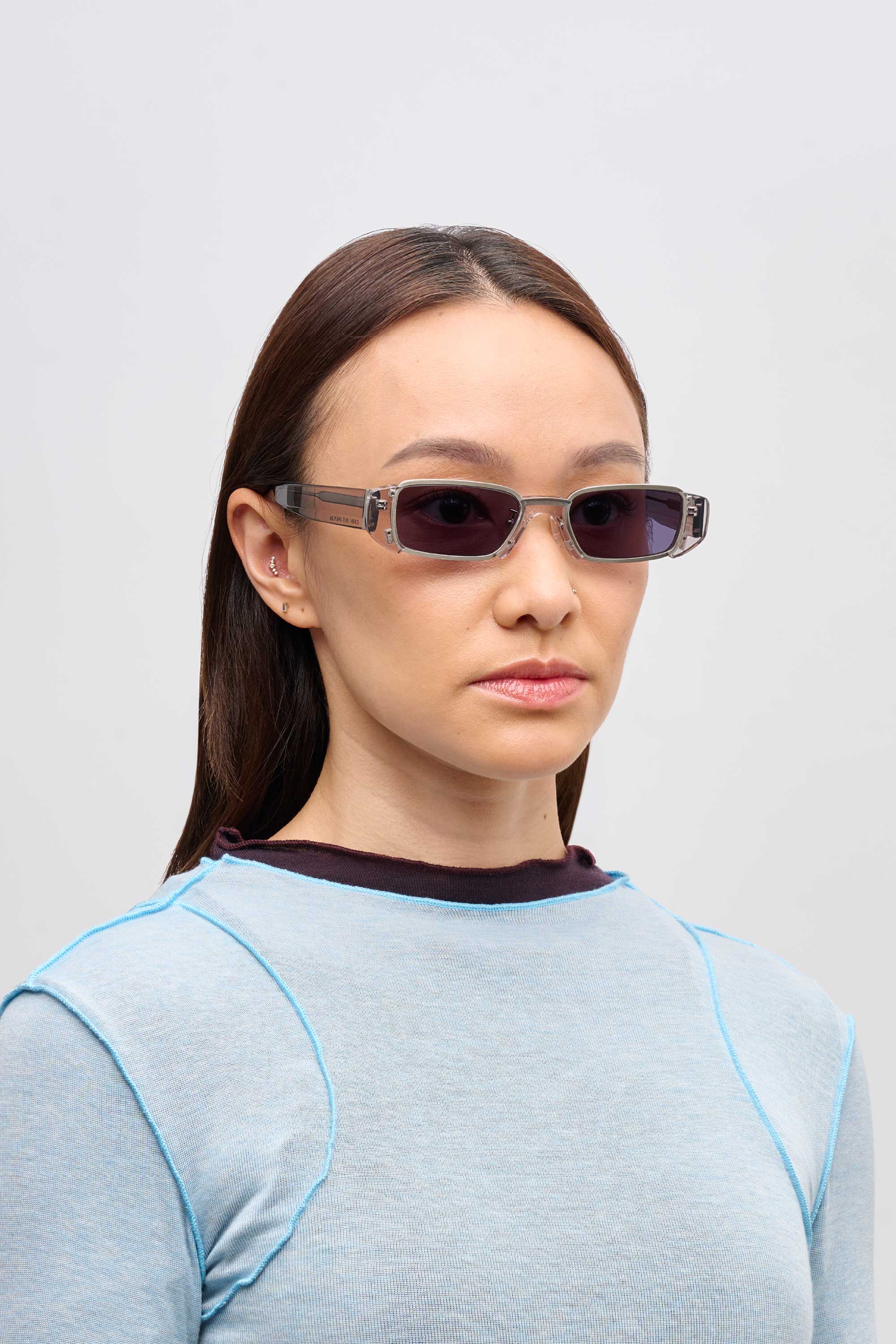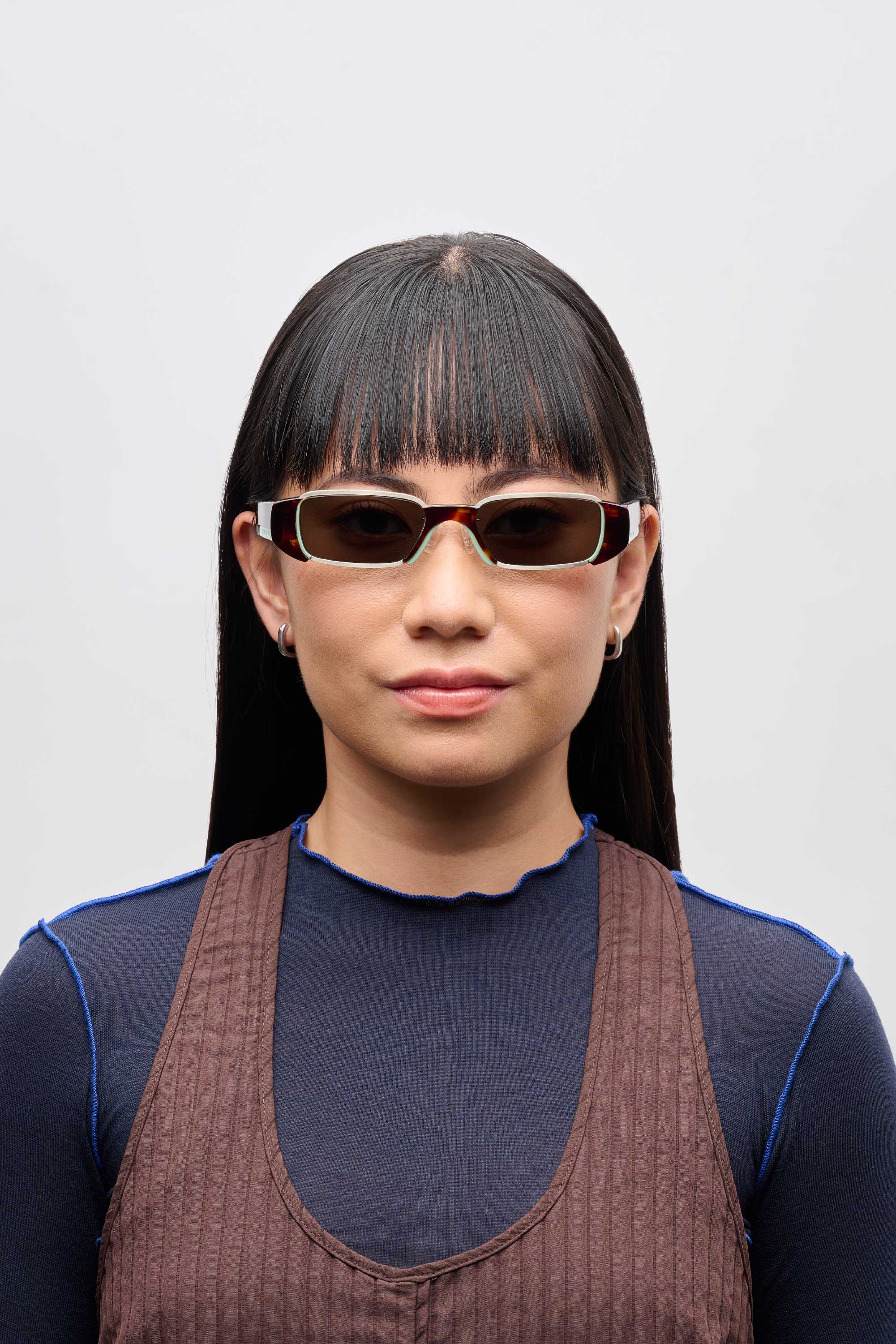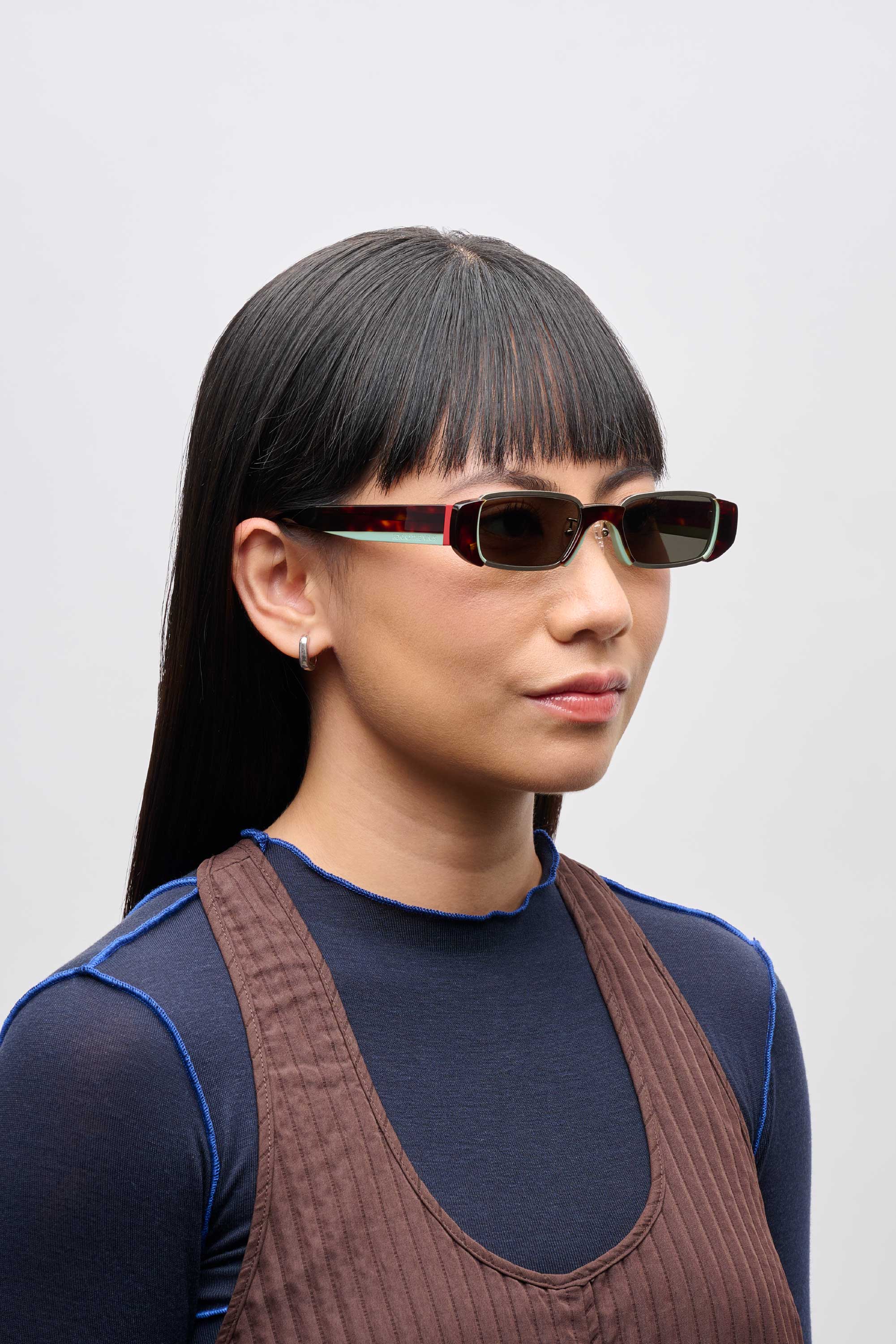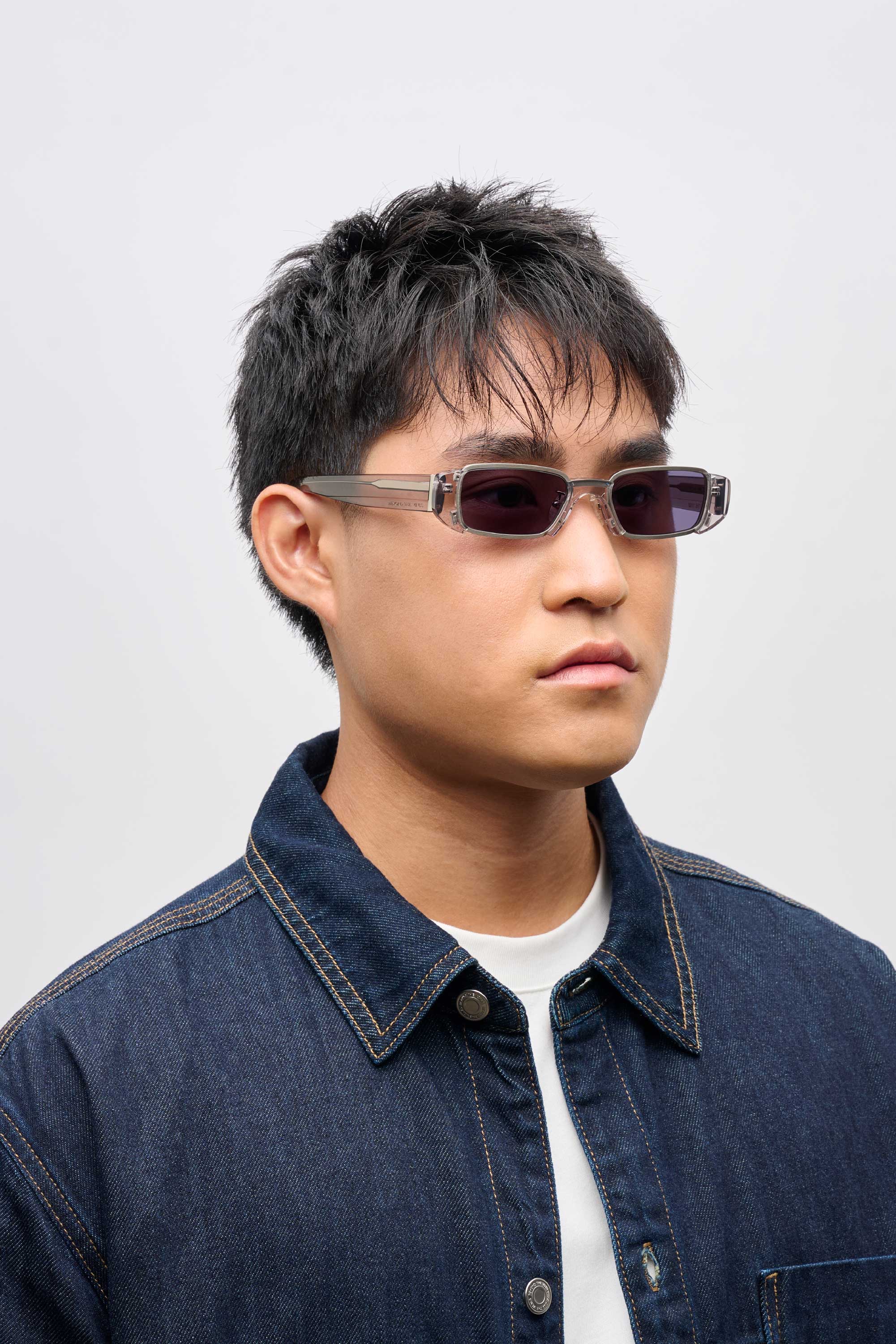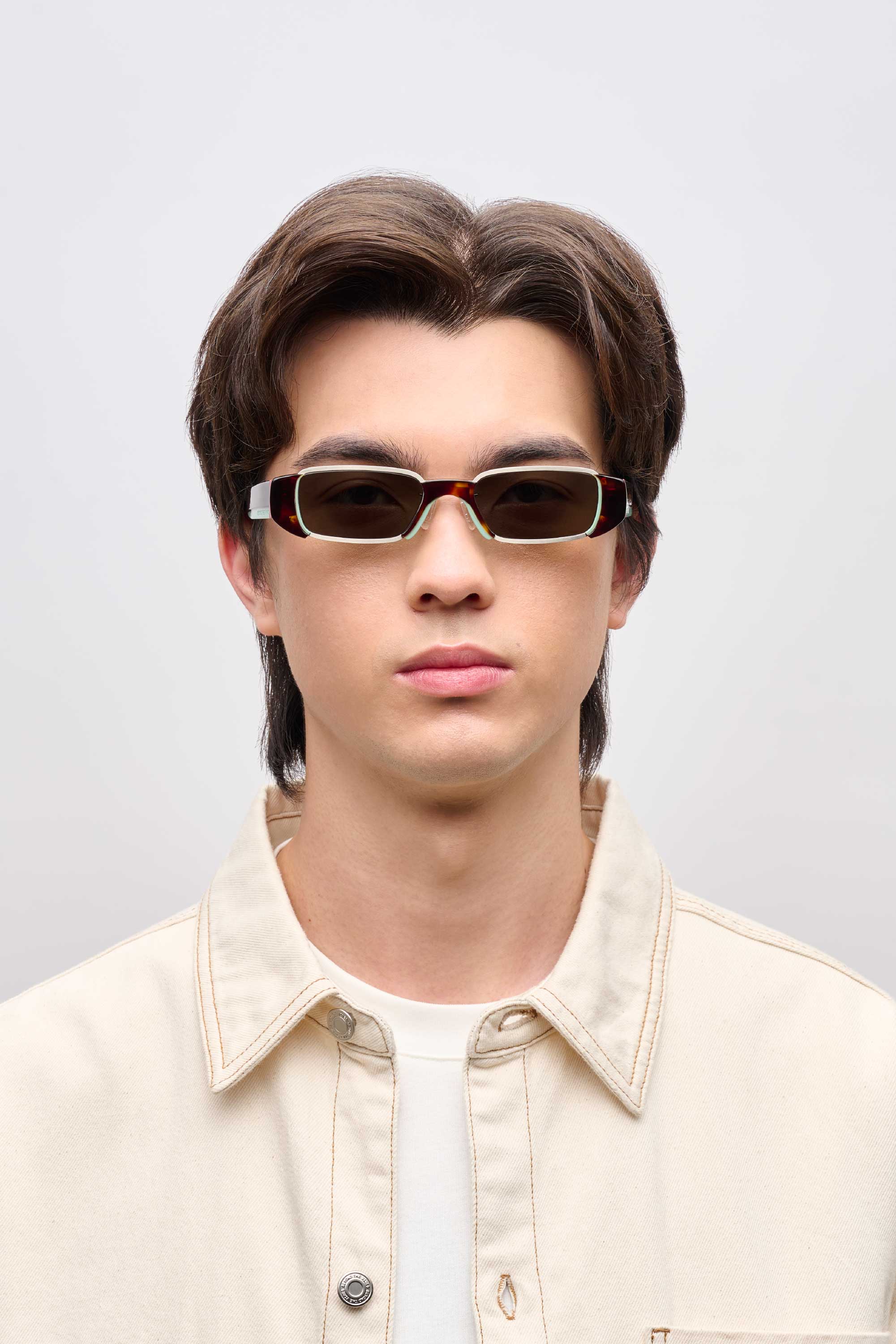 Designed in a sleek rectangular silhouette, Horizon features a slim profile with tinted lenses, finished with subtle branding on the arms. Comes with a custom aluminium case for easy storage and protection.