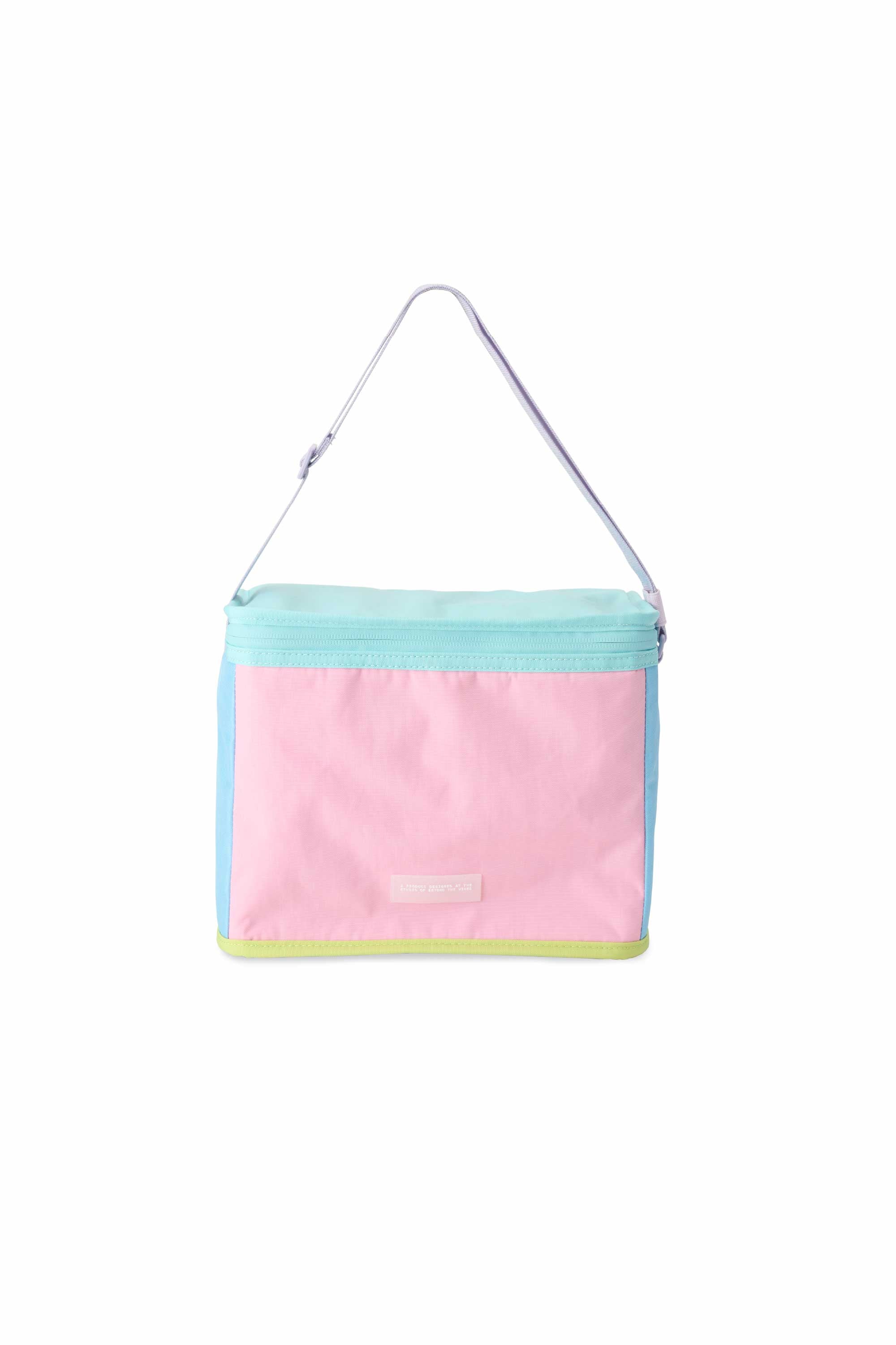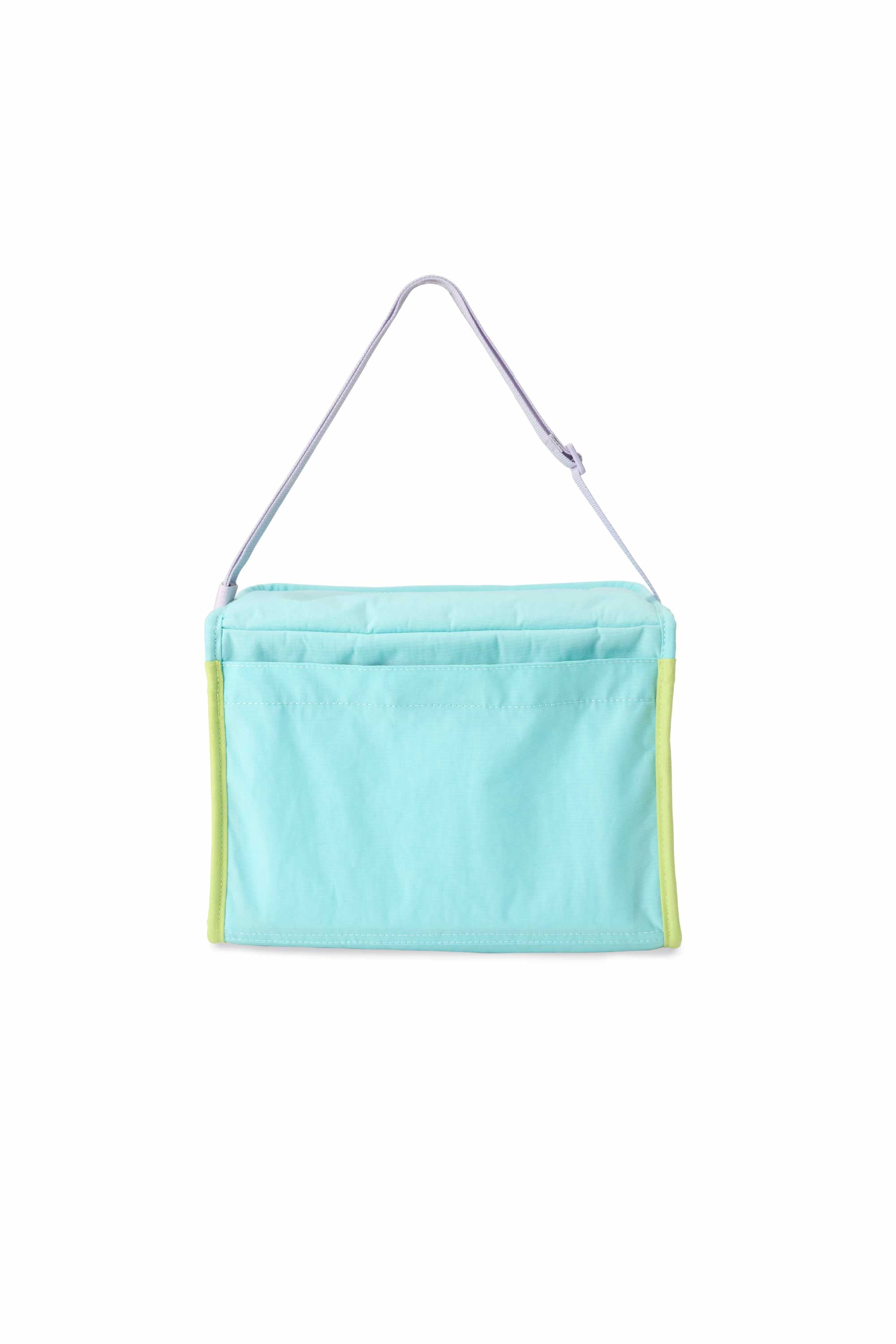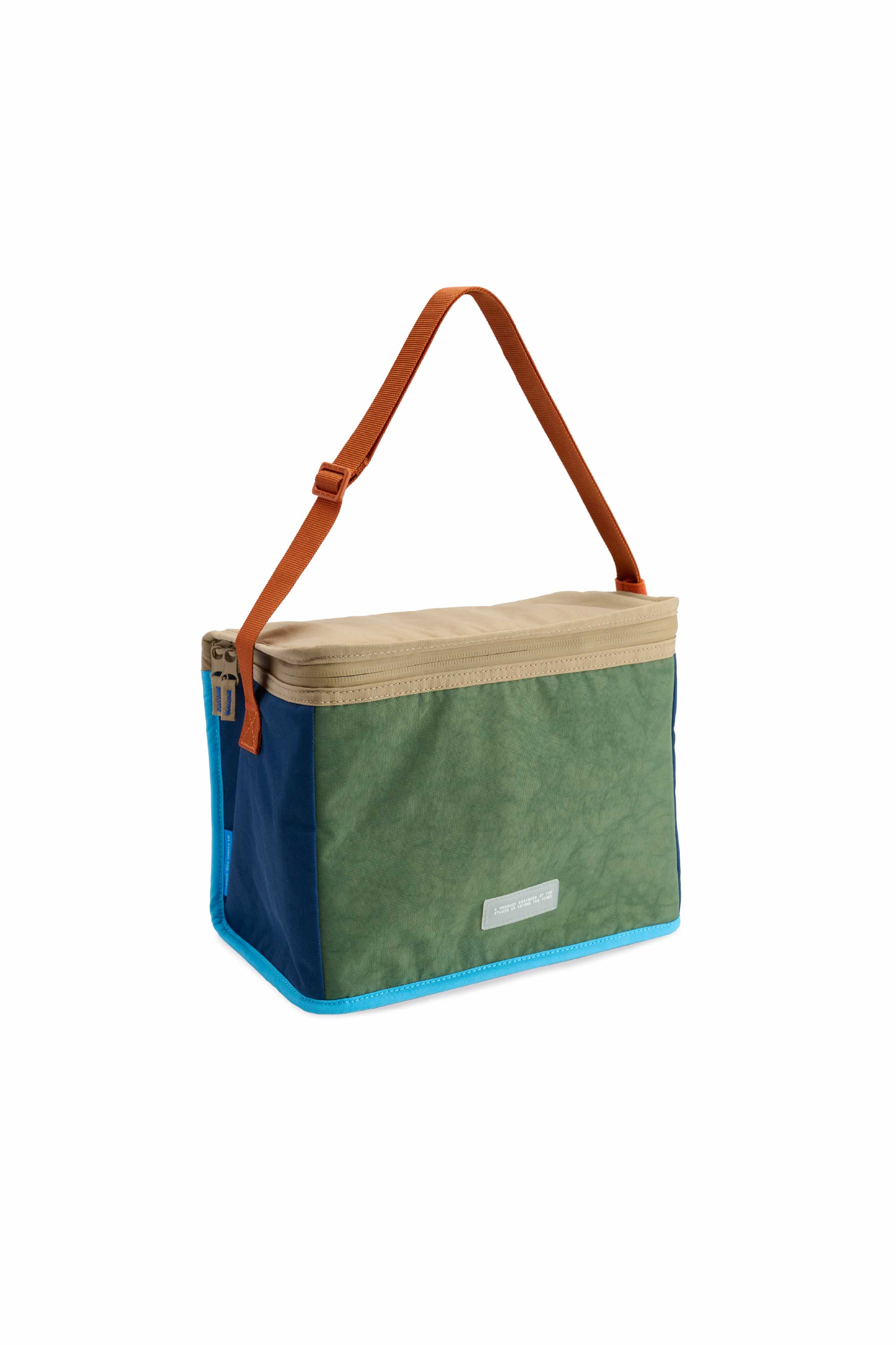Crafted from structured nylon, this large colourblock lunch bag is designed with a waterproof zip opening and a contrast adjustable webbing strap. The insulated interior includes a zippered mesh pocket and side patch pockets for cutlery and daily essentials. It is finished with a roomy back pocket and our rubber product label on the front.