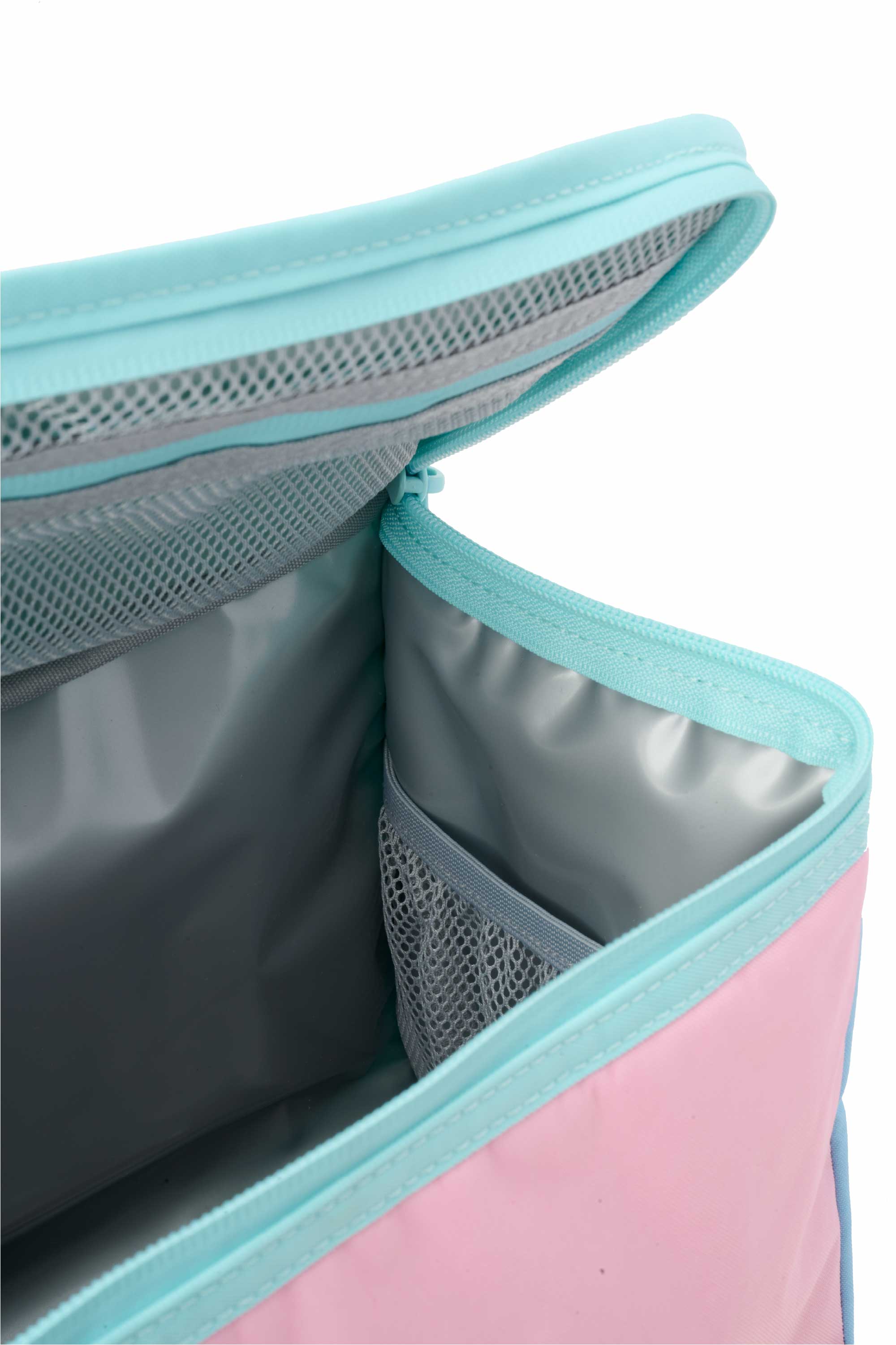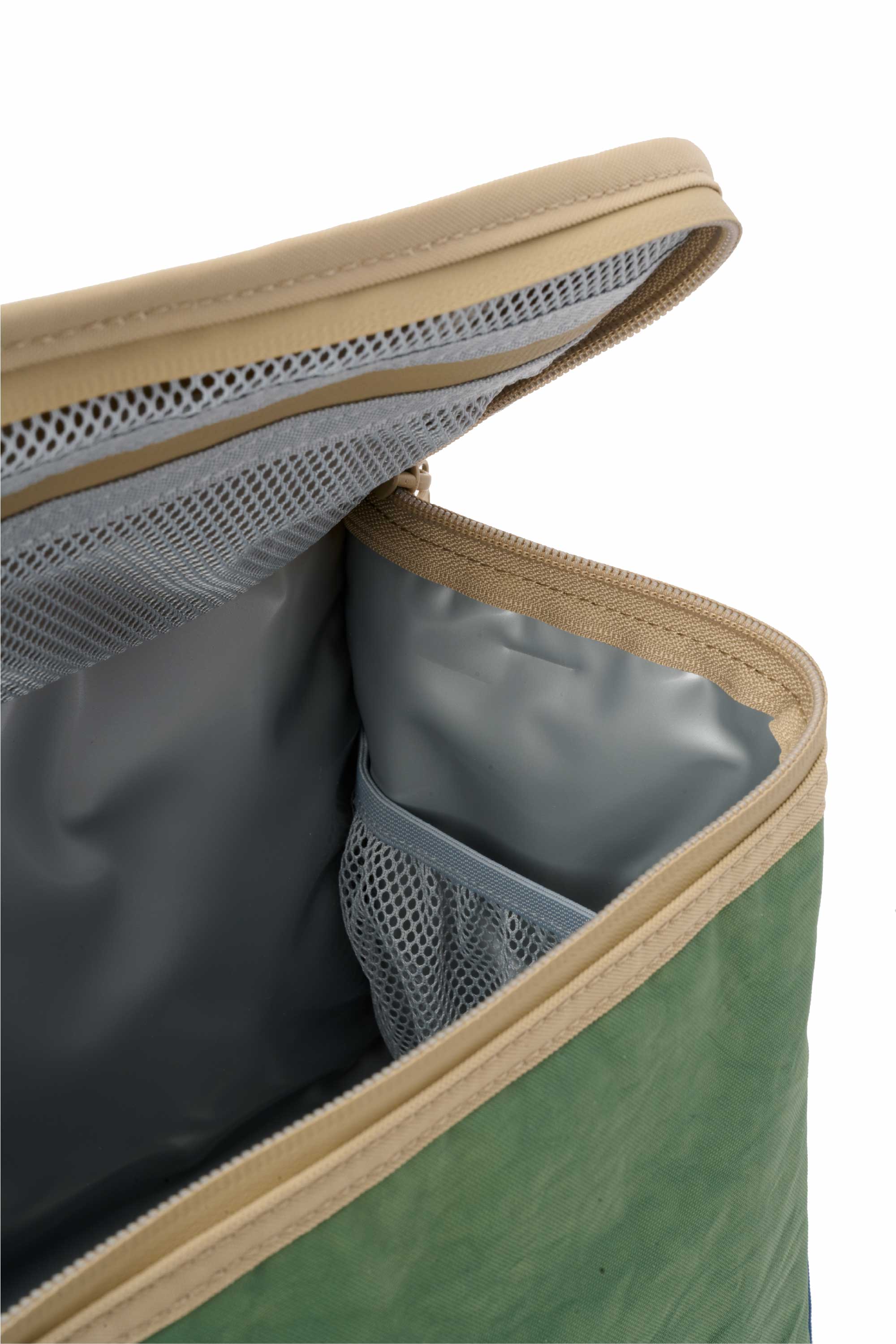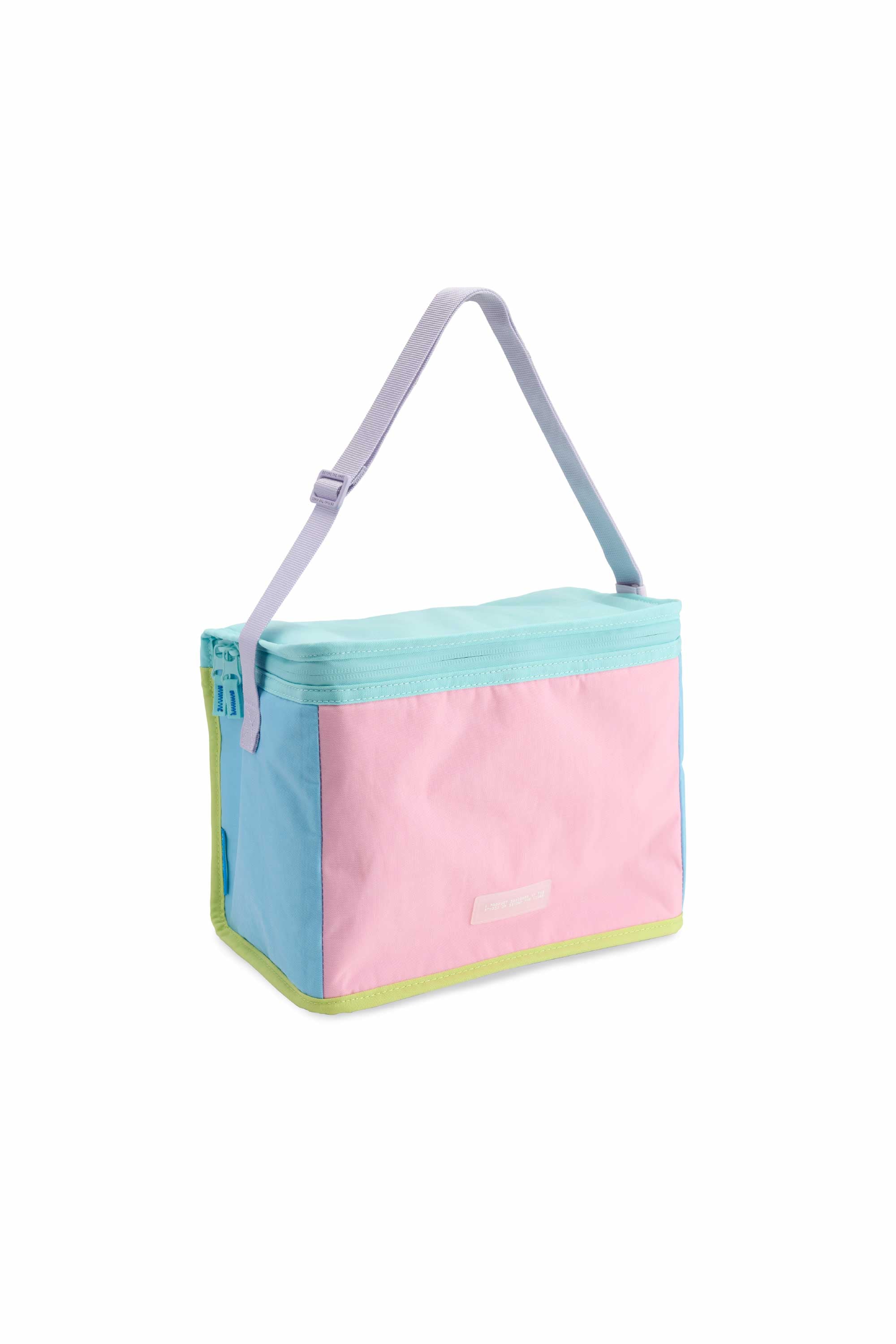 Crafted from structured nylon, this large colourblock lunch bag is designed with a waterproof zip opening and a contrast adjustable webbing strap. The insulated interior includes a zippered mesh pocket and side patch pockets for cutlery and daily essentials. It is finished with a roomy back pocket and our rubber product label on the front.