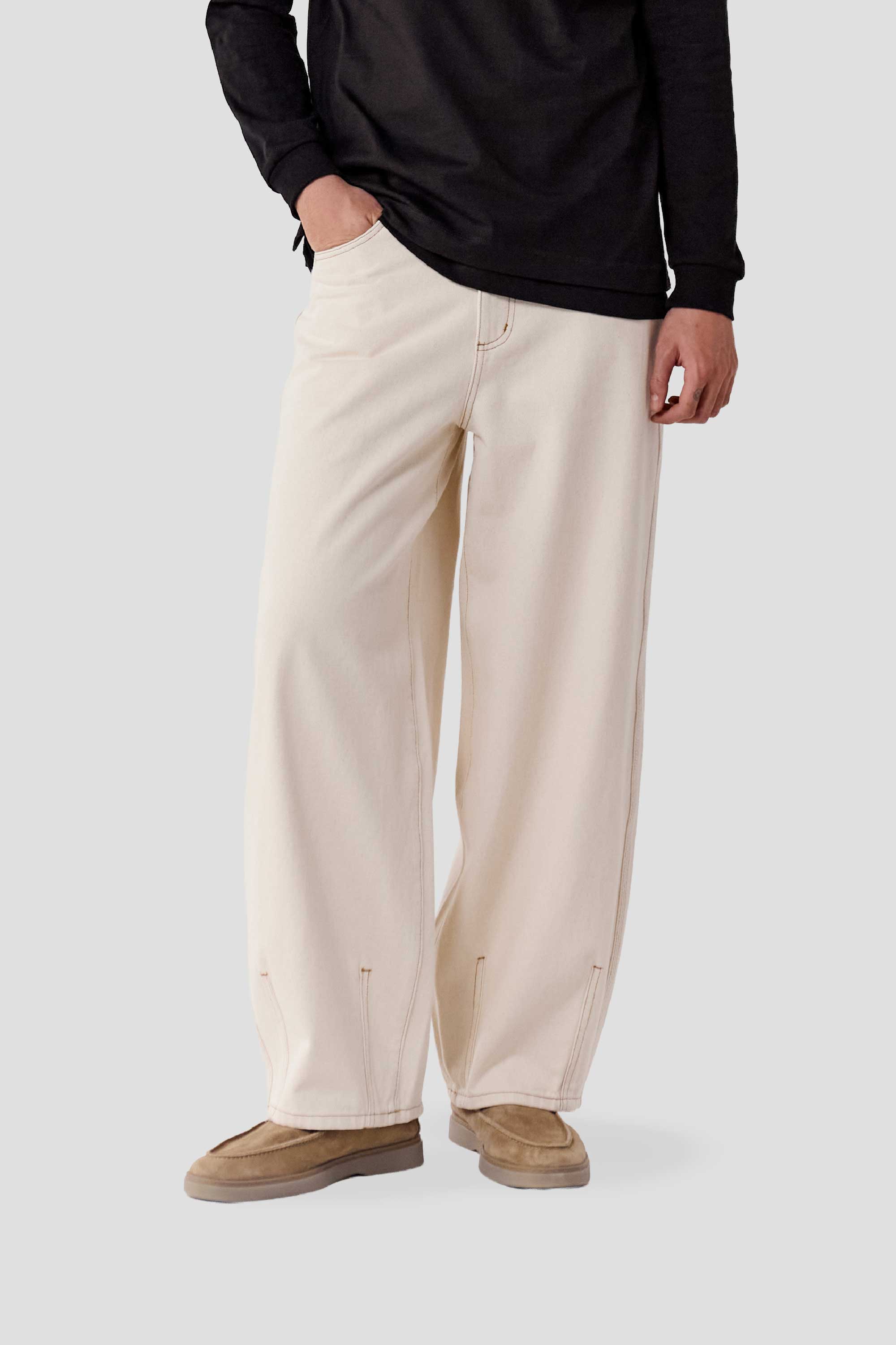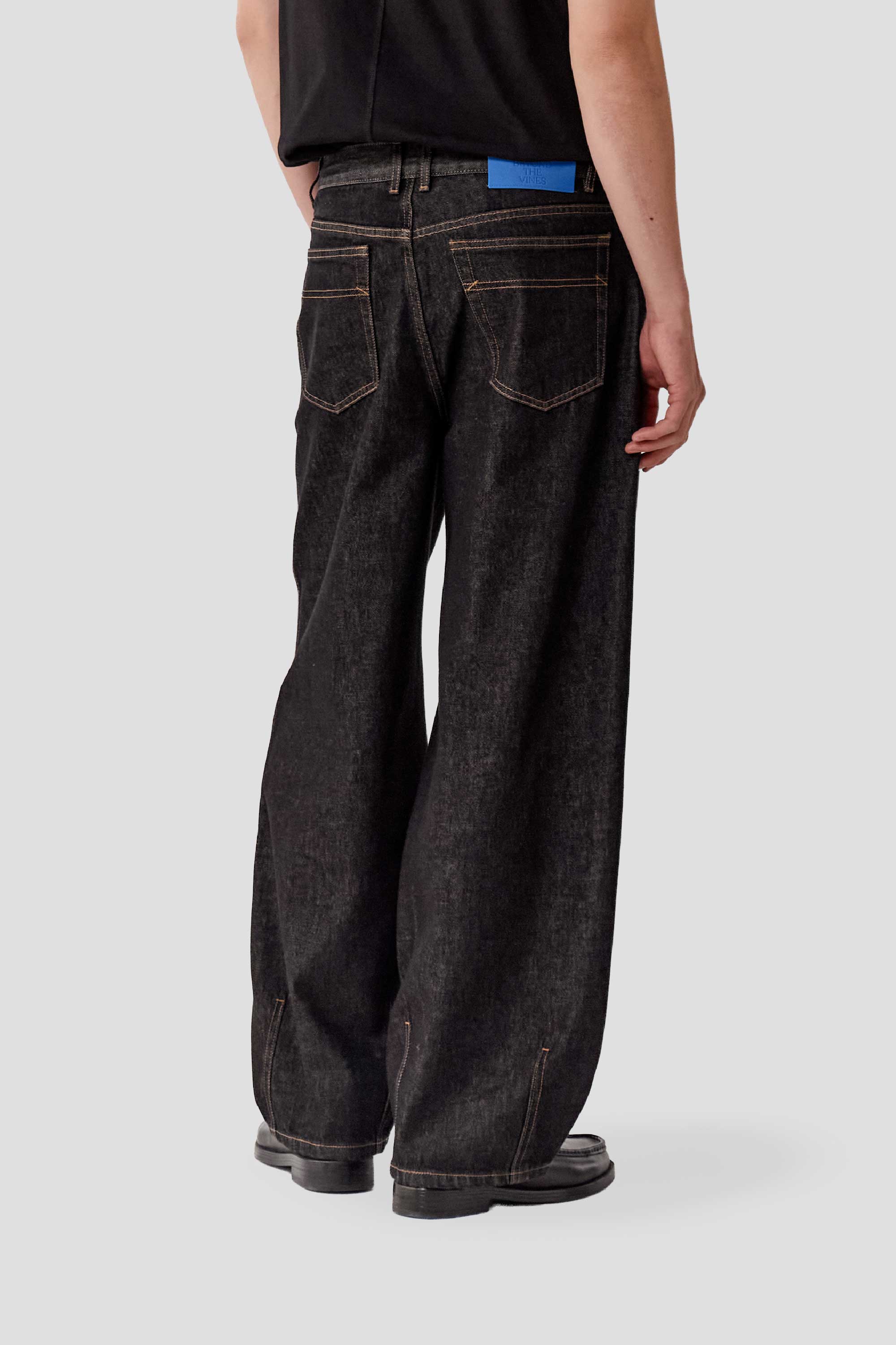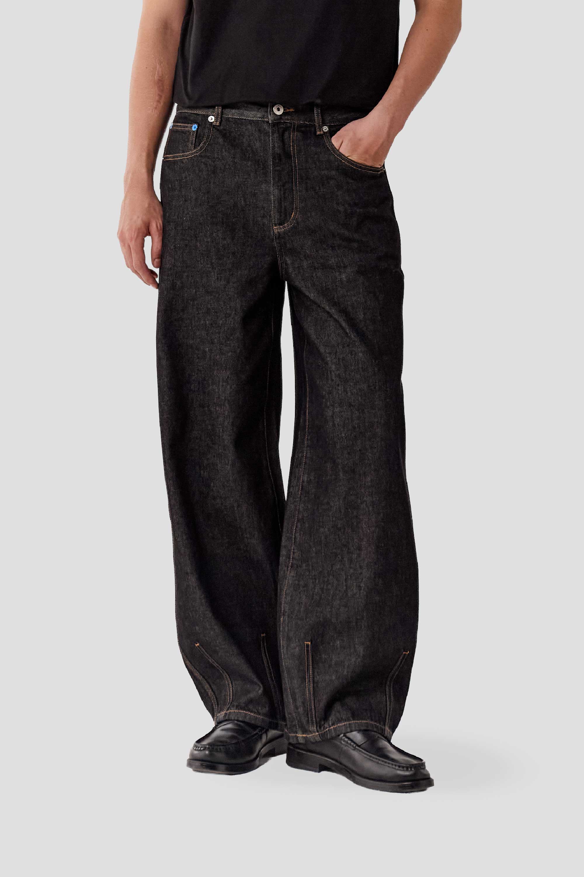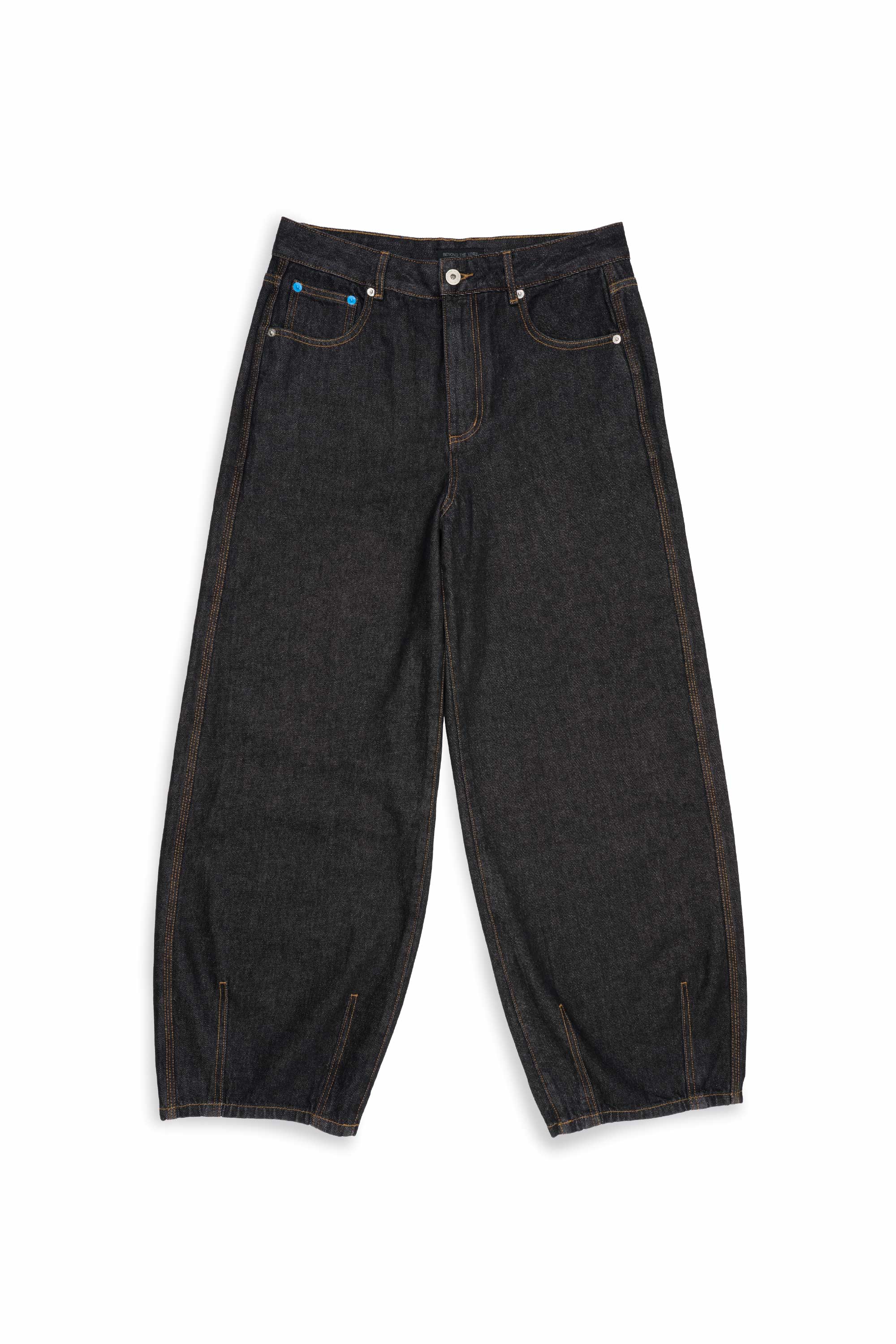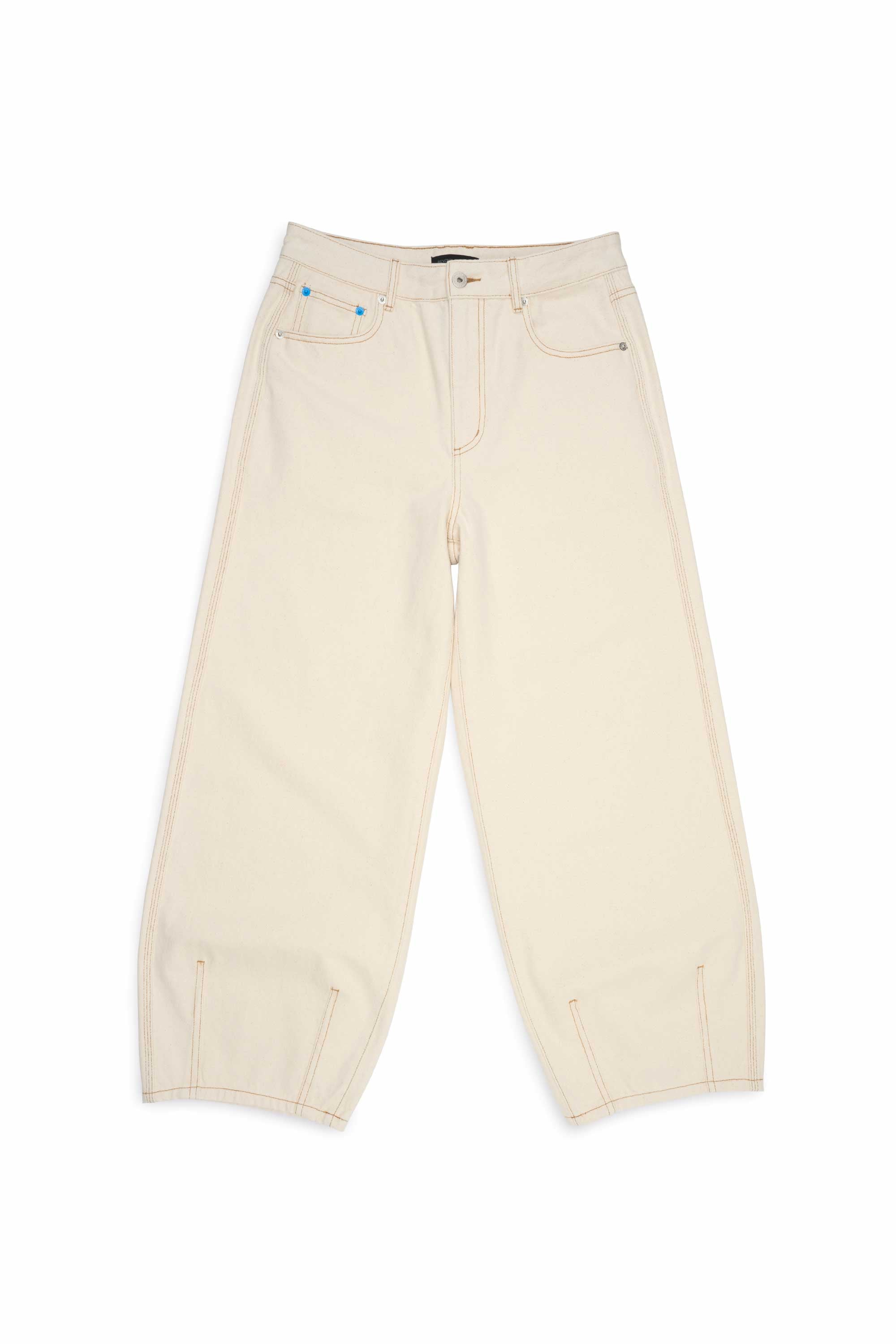 Made with 100% cotton denim, this cocoon fit trouser features a relaxed silhouette, dart details at the hem and contrast stitching. It is finished with engineer blue rivet details and a signature suede brand label on the back.