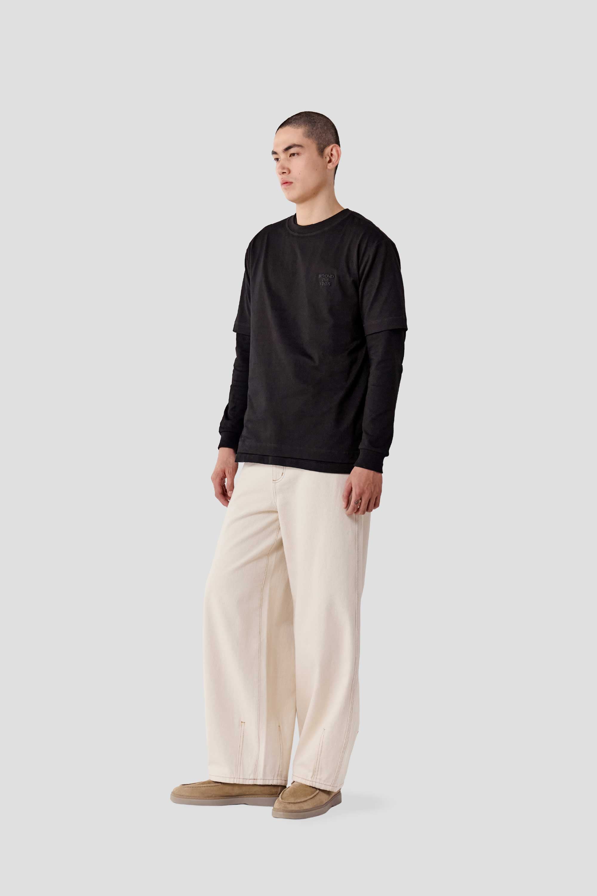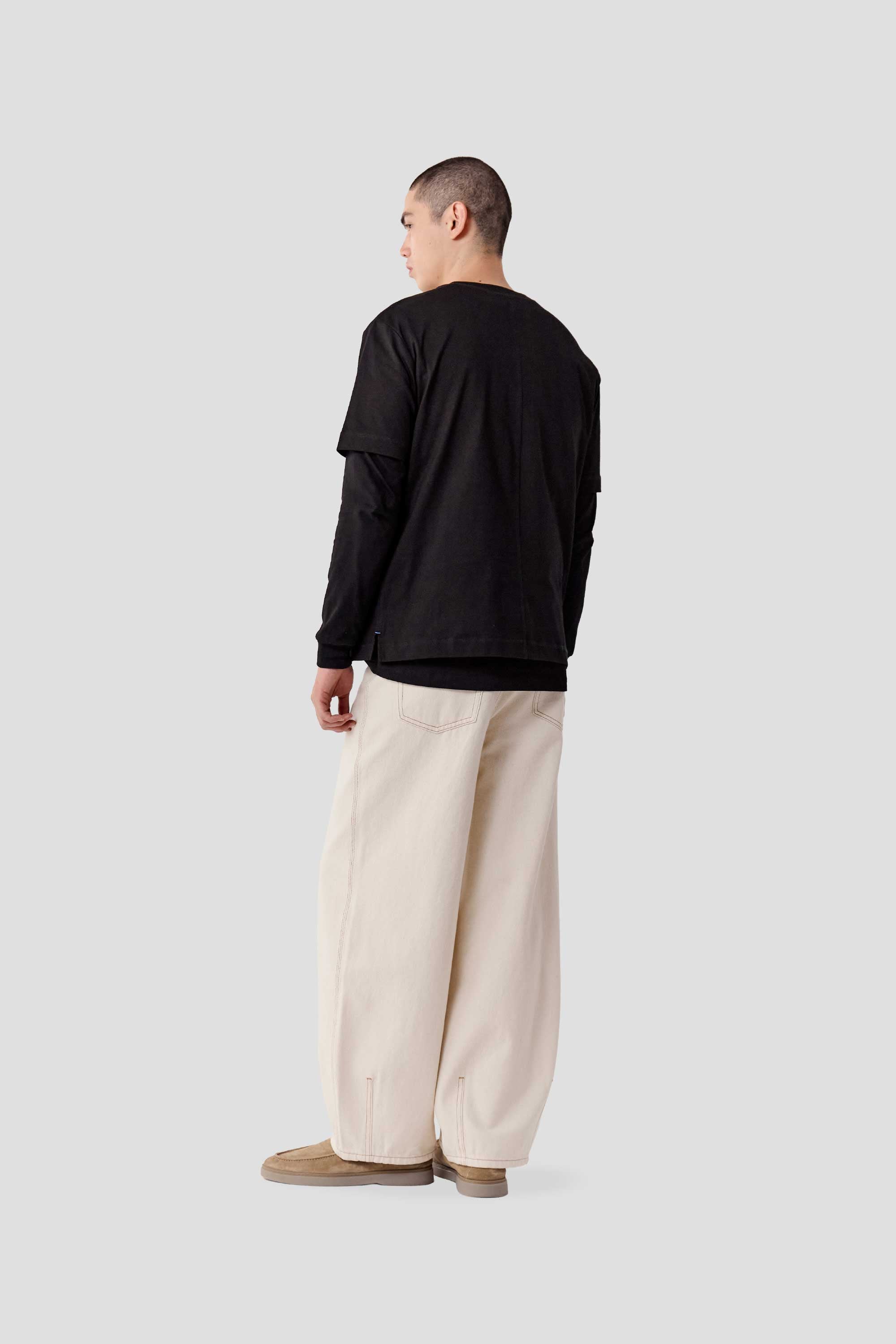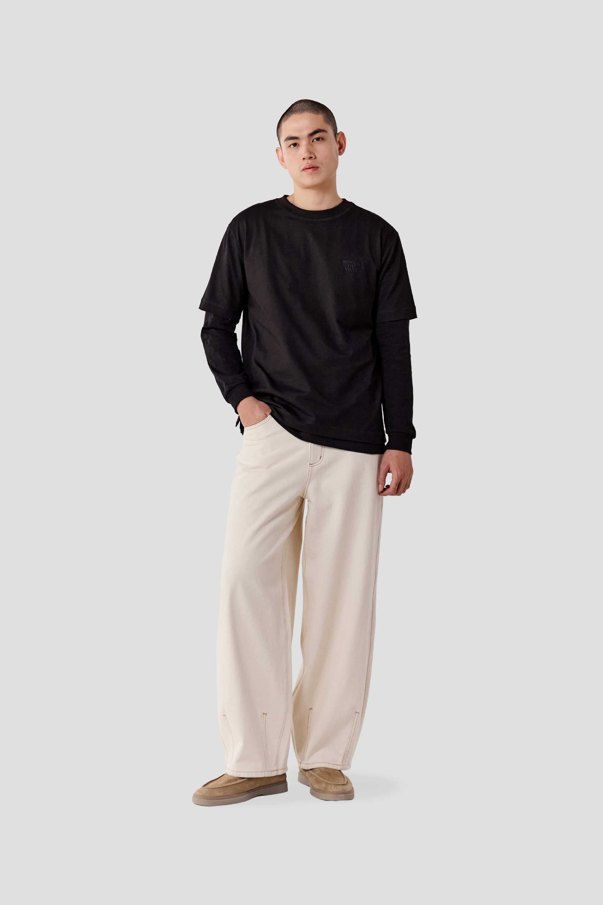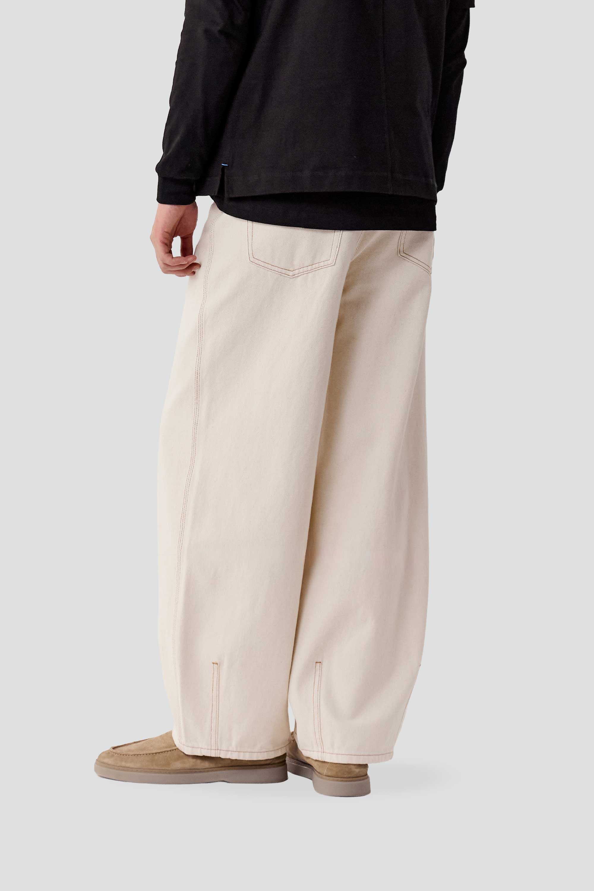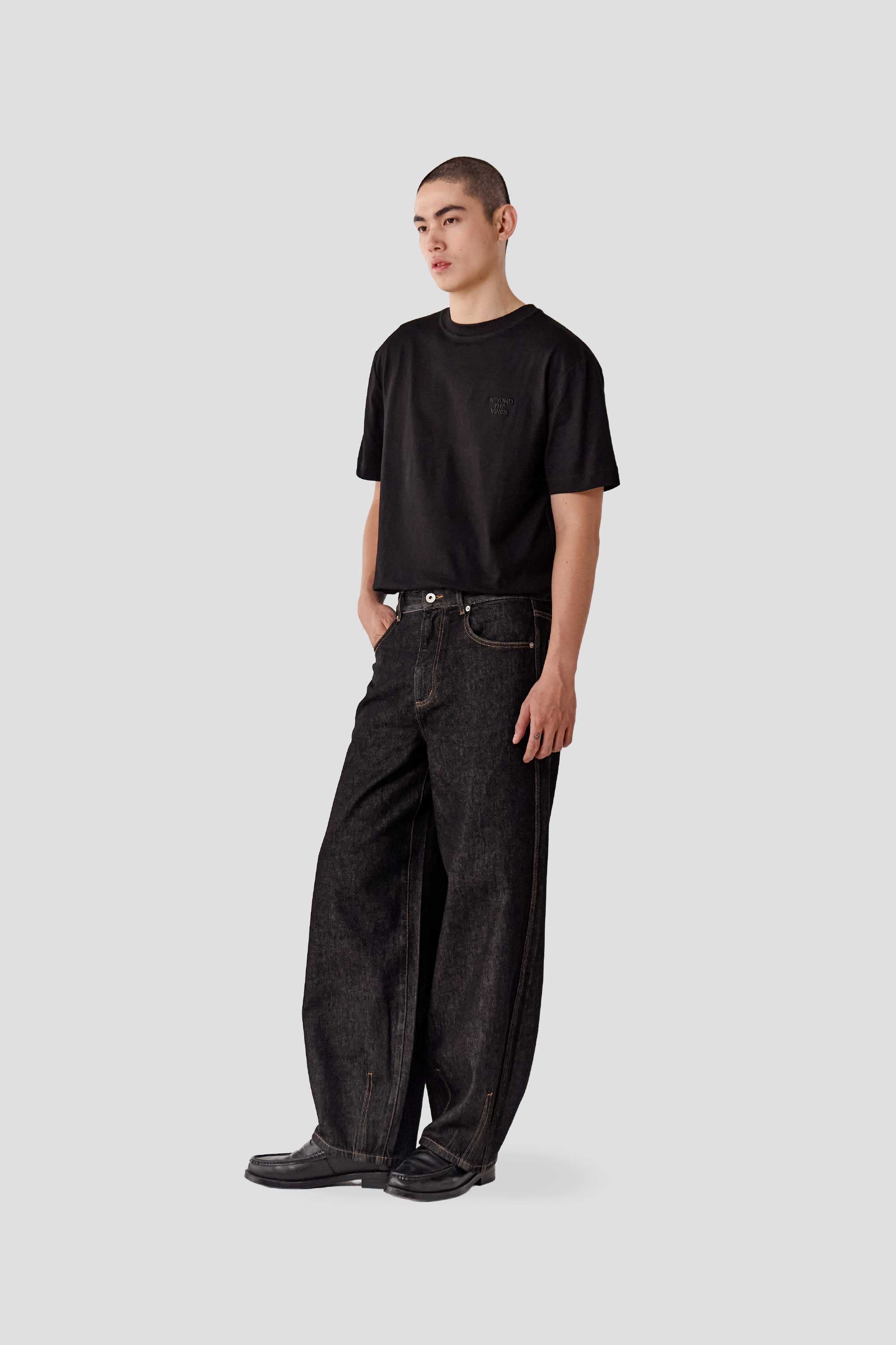 Made with 100% cotton denim, this cocoon fit trouser features a relaxed silhouette, dart details at the hem and contrast stitching. It is finished with engineer blue rivet details and a signature suede brand label on the back.