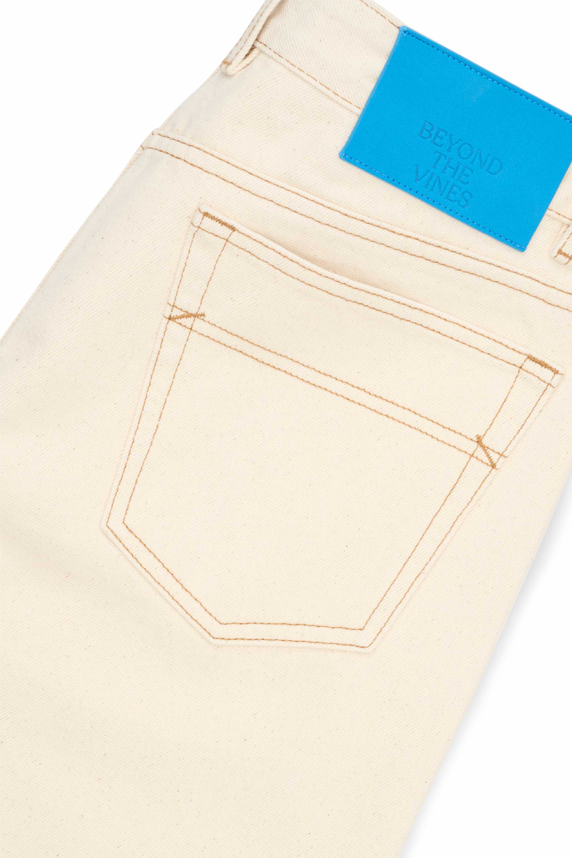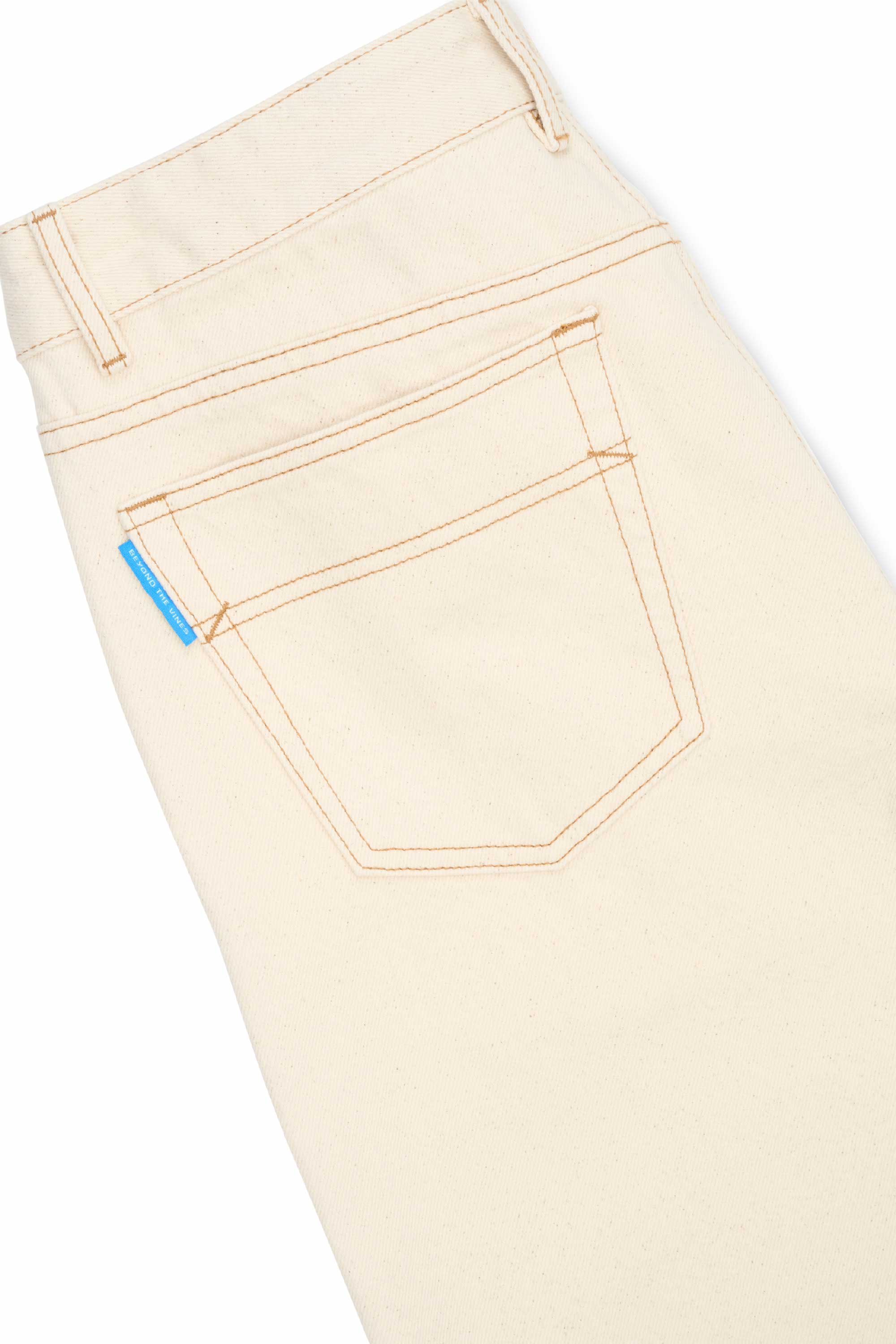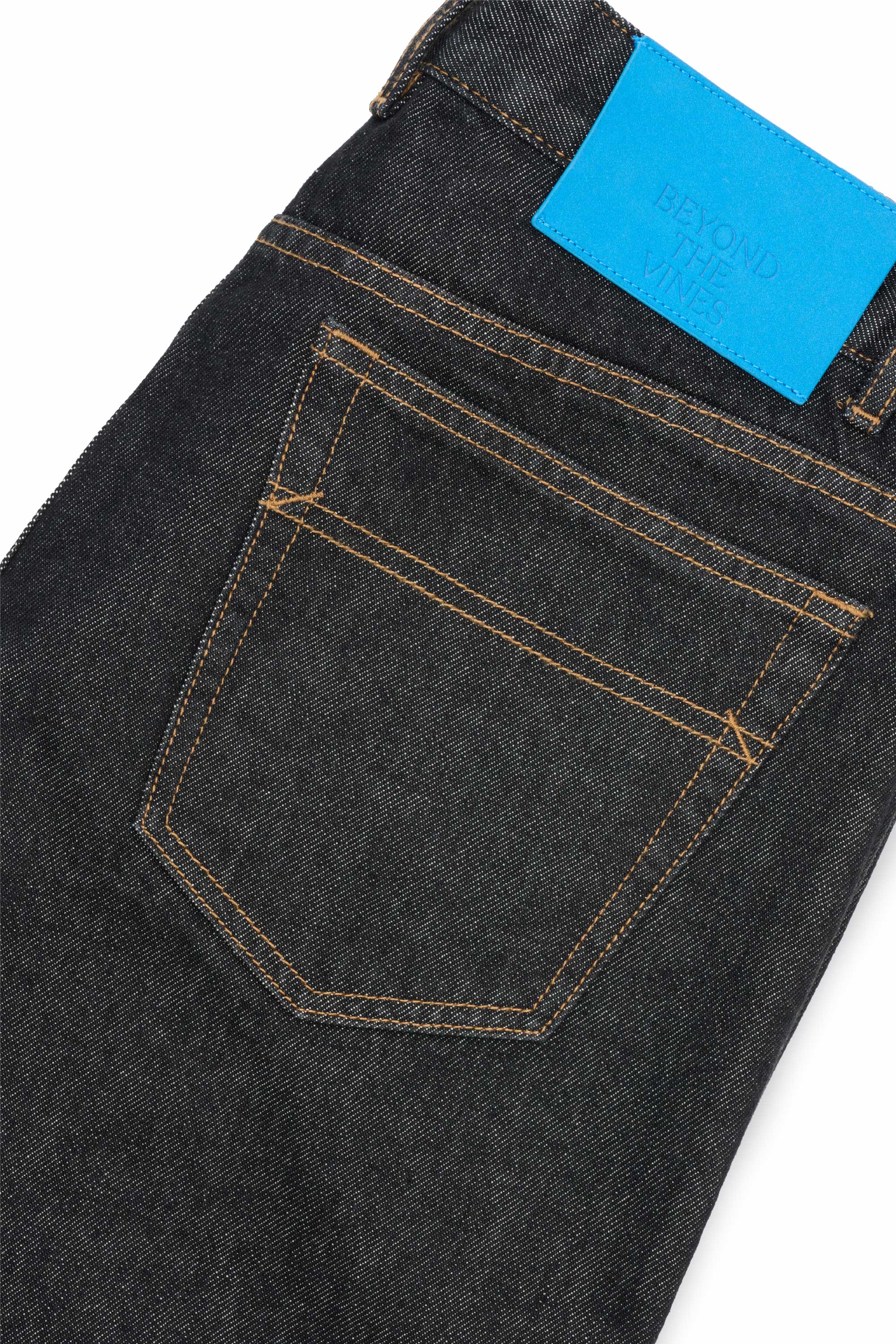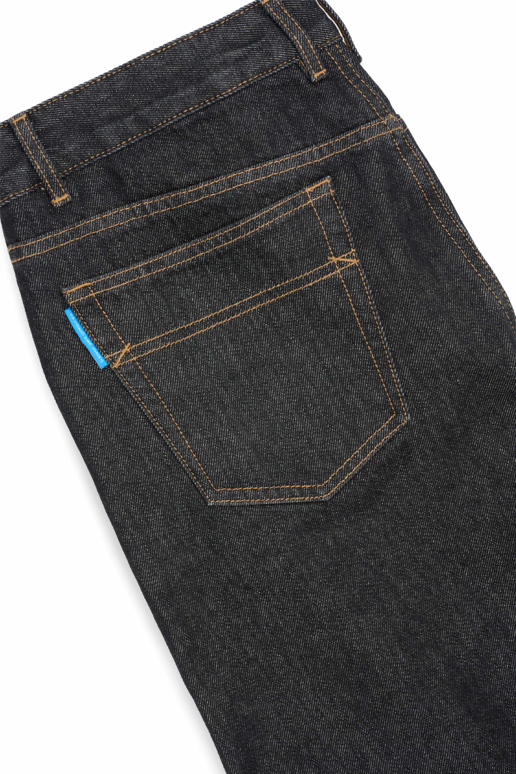 Expect some colour transfer in the first few washes. Wash cold in a garment bag on a gentle cycle with similar colours. Line dry only; do not tumble dry. Slight irregularities and up to 5% shrinkage are natural to denim. Colour may transfer to light fabrics—wear with care as your denim evolves over time.