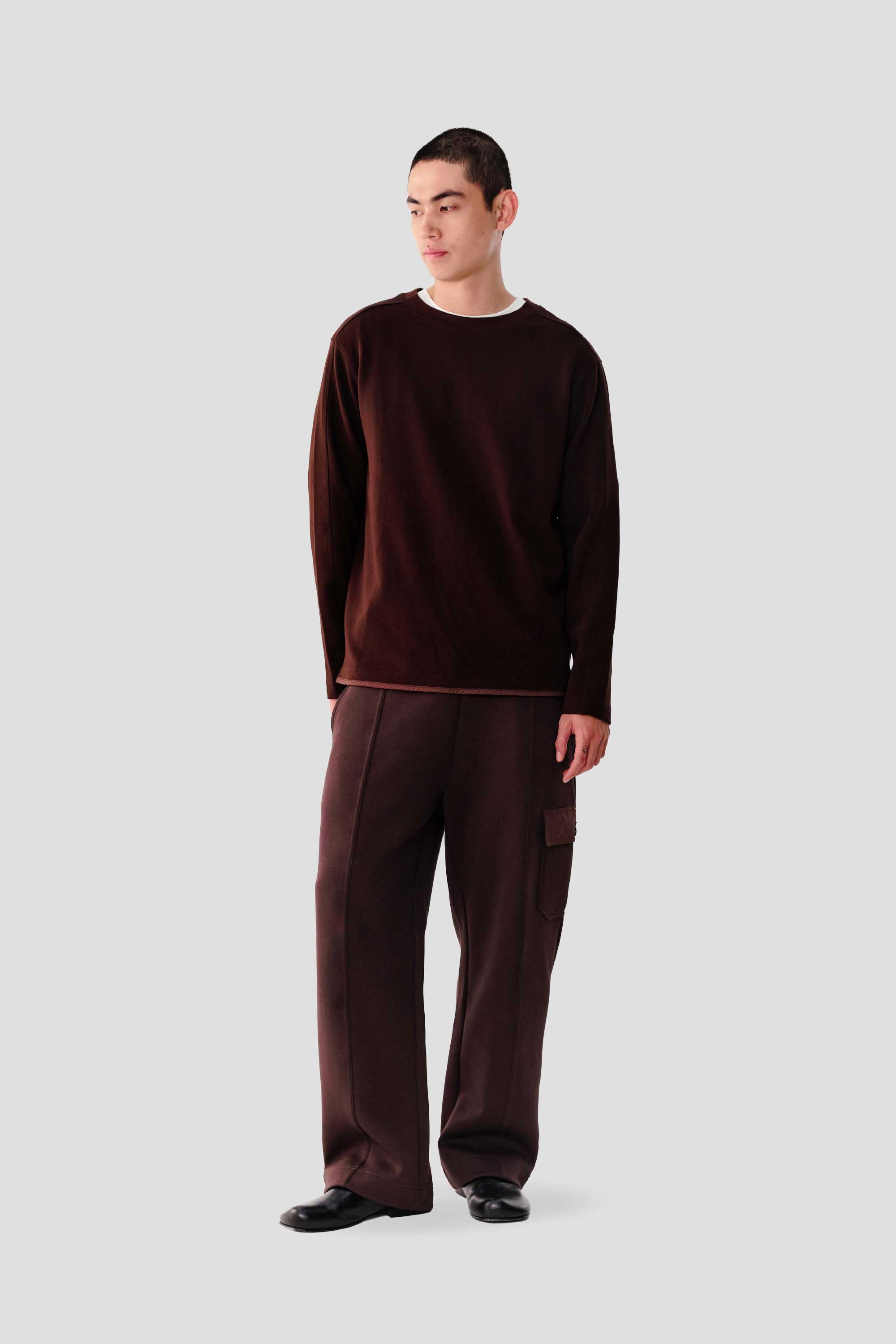 Fabricated in a soft heavyweight jersey, this long sleeve t-shirt features offset shoulder and sleeve seams, a split hem with tonal binding, and is finished with an understated embroidered logo.