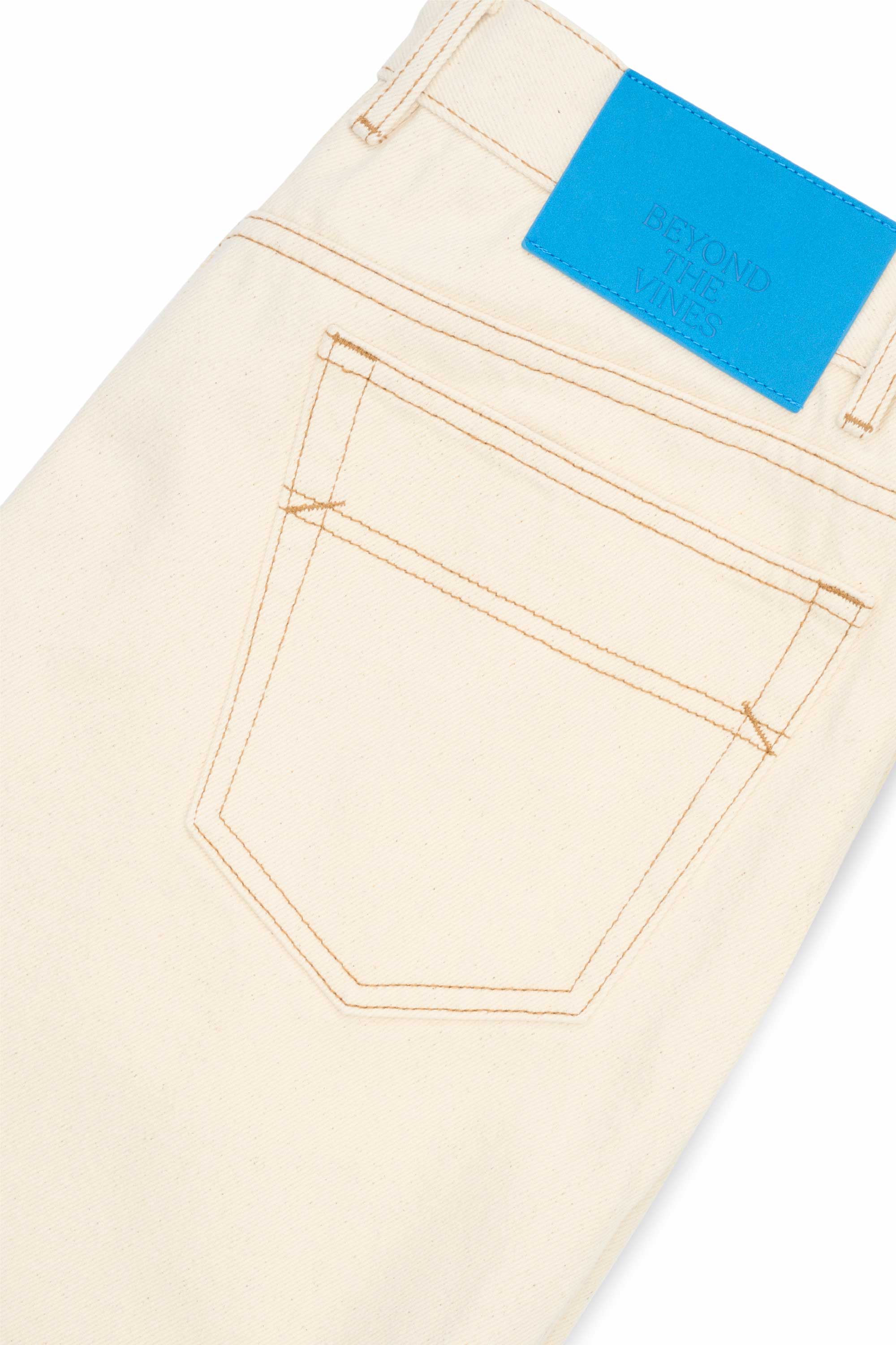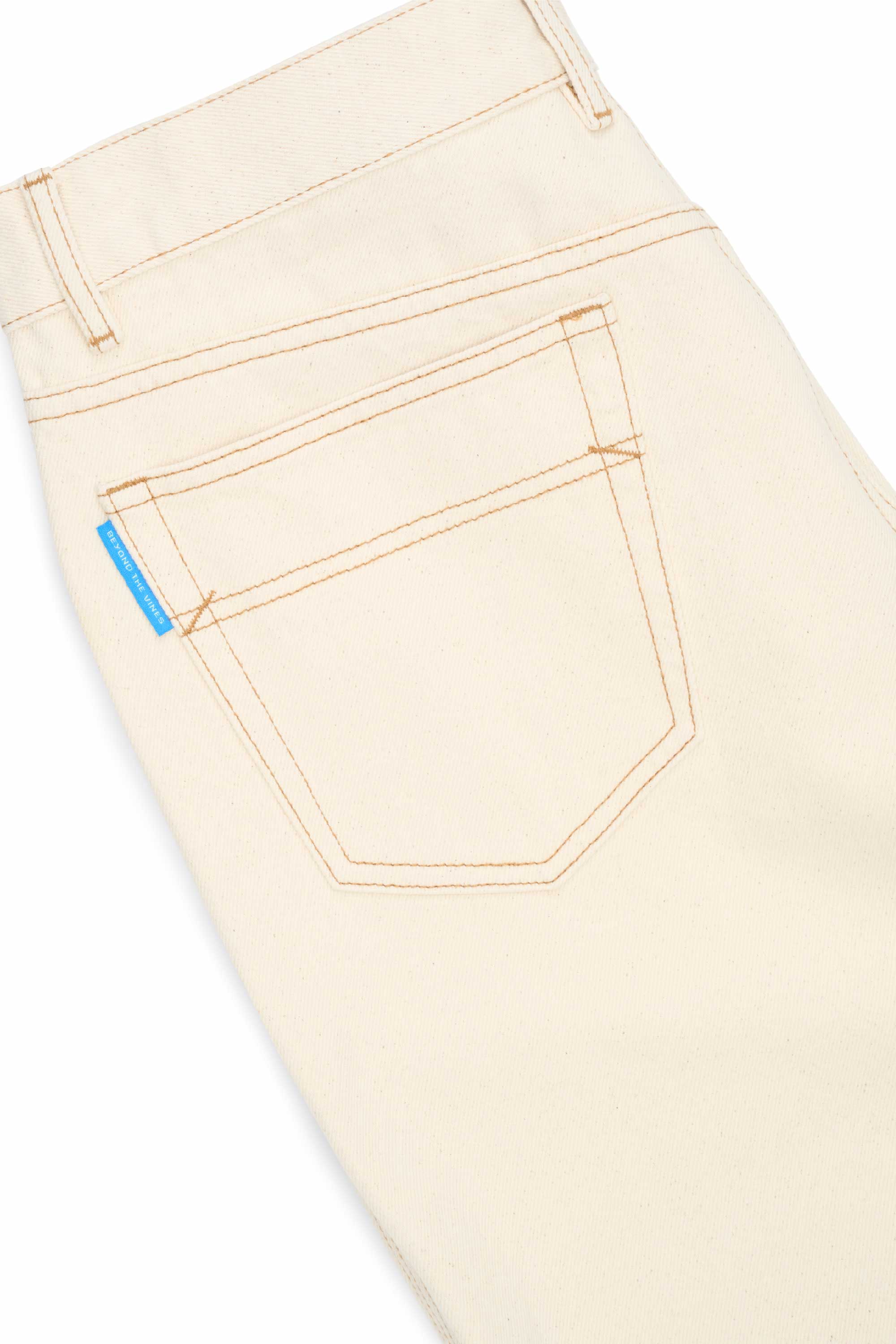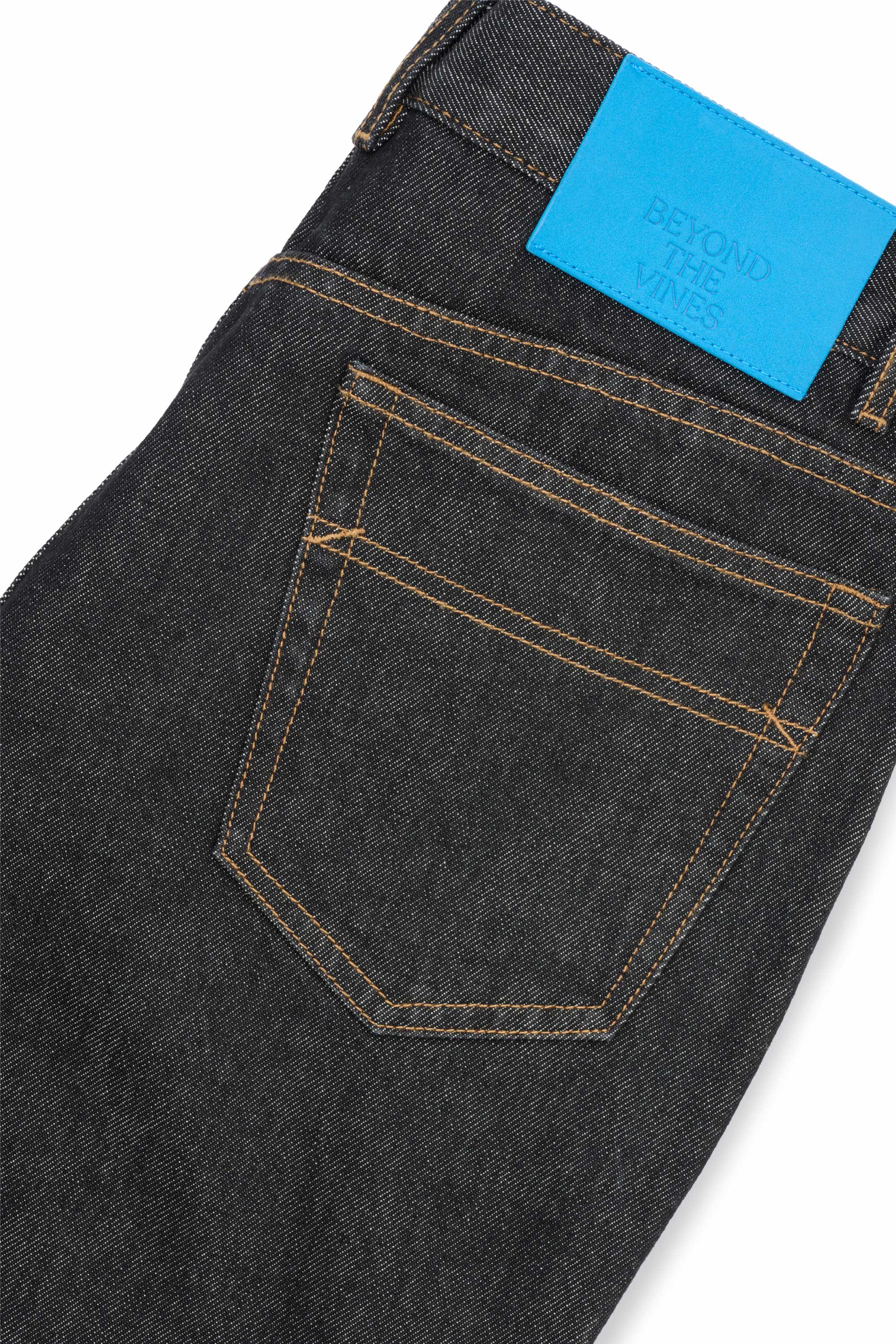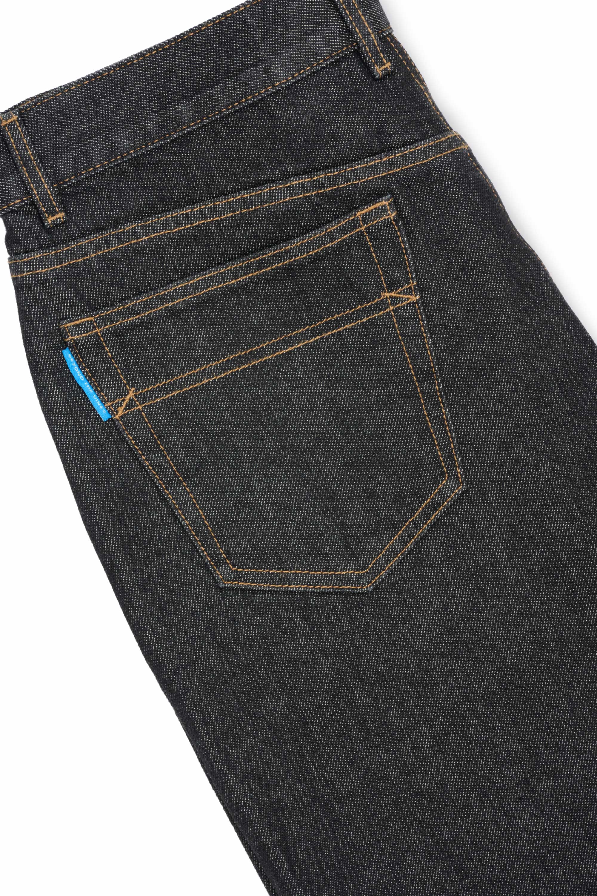 Expect some colour transfer in the first few washes. Wash cold in a garment bag on a gentle cycle with similar colours. Line dry only; do not tumble dry. Slight irregularities and up to 5% shrinkage are natural to denim. Colour may transfer to light fabrics—wear with care as your denim evolves over time.