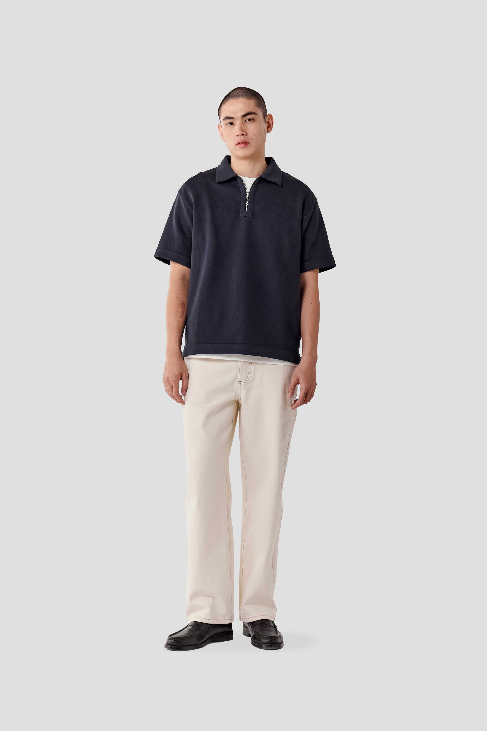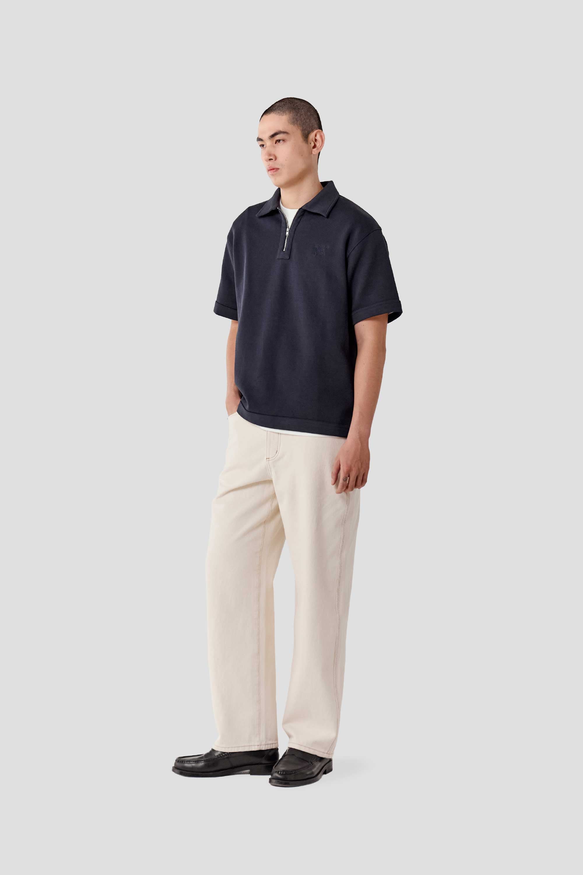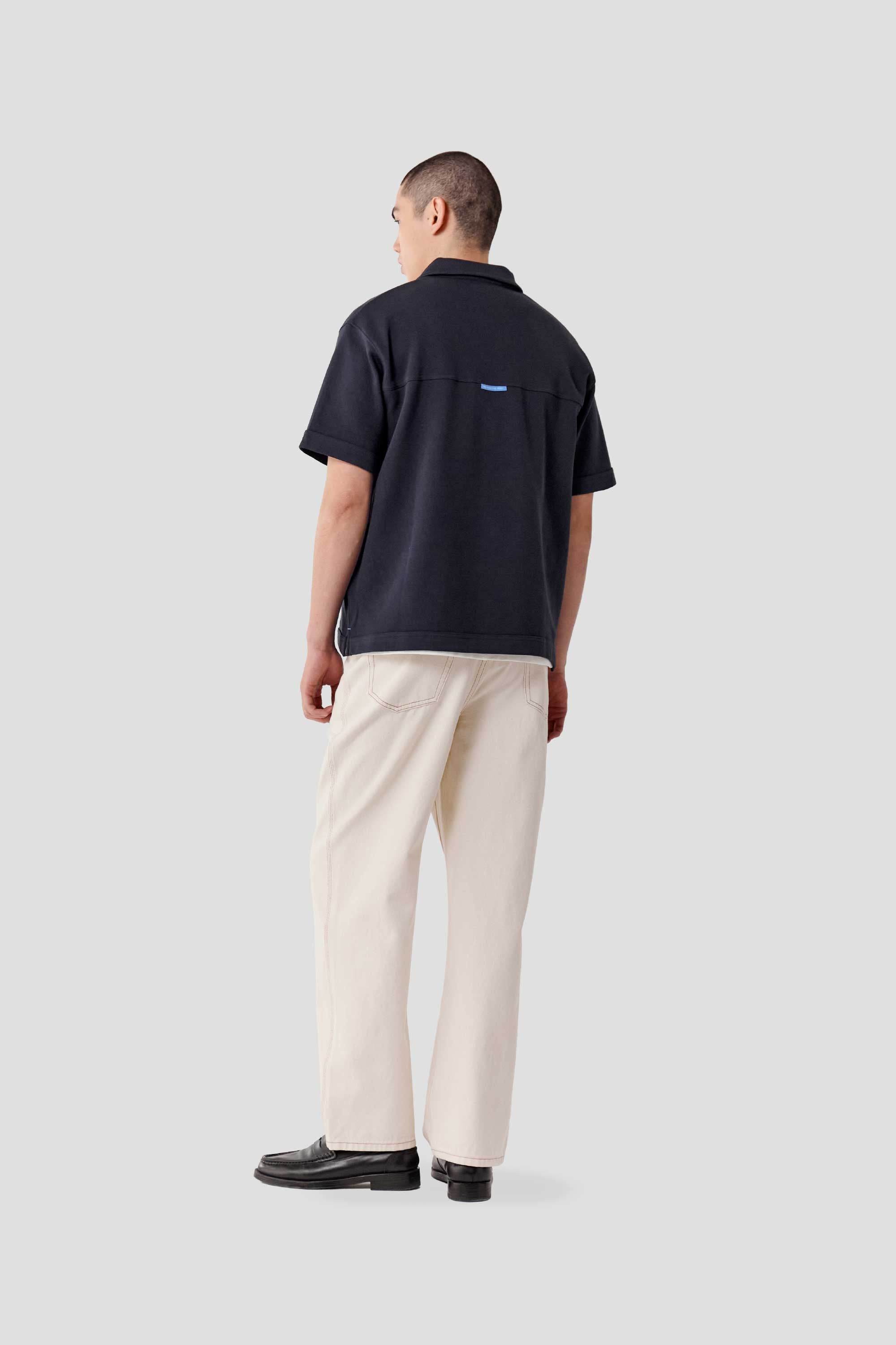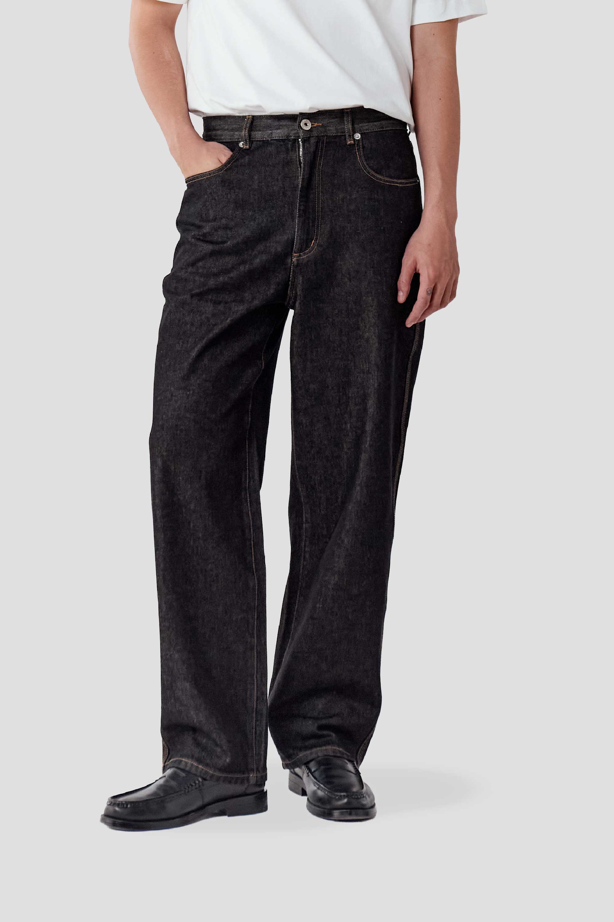 Expect some colour transfer in the first few washes. Wash cold in a garment bag on a gentle cycle with similar colours. Line dry only; do not tumble dry. Slight irregularities and up to 5% shrinkage are natural to denim. Colour may transfer to light fabrics—wear with care as your denim evolves over time.