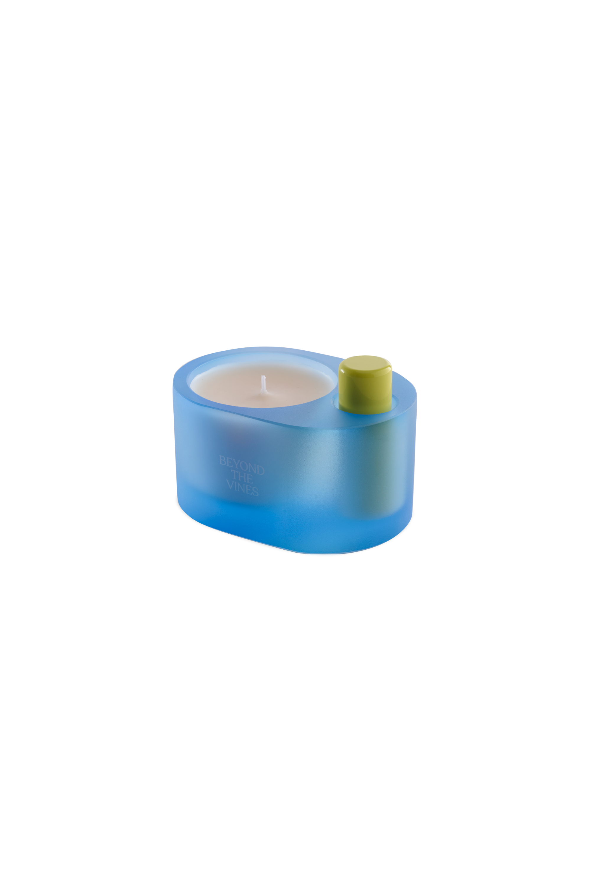 Designed to be mixed and matched, this modular candle set brings playful form and function into your space. Each candle sits in a frosted lead-free crystal glass holder. Crafted from a blend of mineral and vegetable waxes, the candles burn cleanly and evenly. Available in three colours, each paired with a distinctive scent inspired by moments of calm, clarity and comfort.