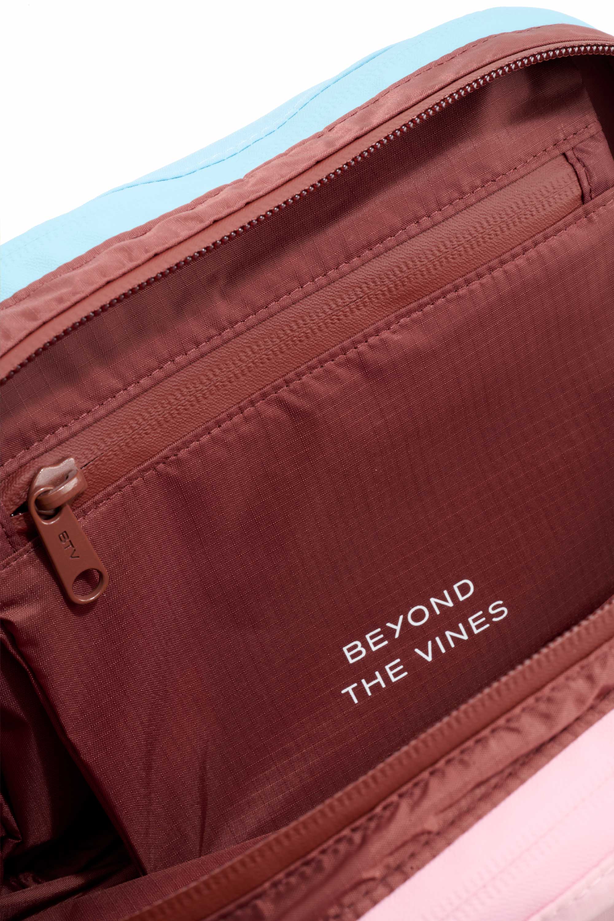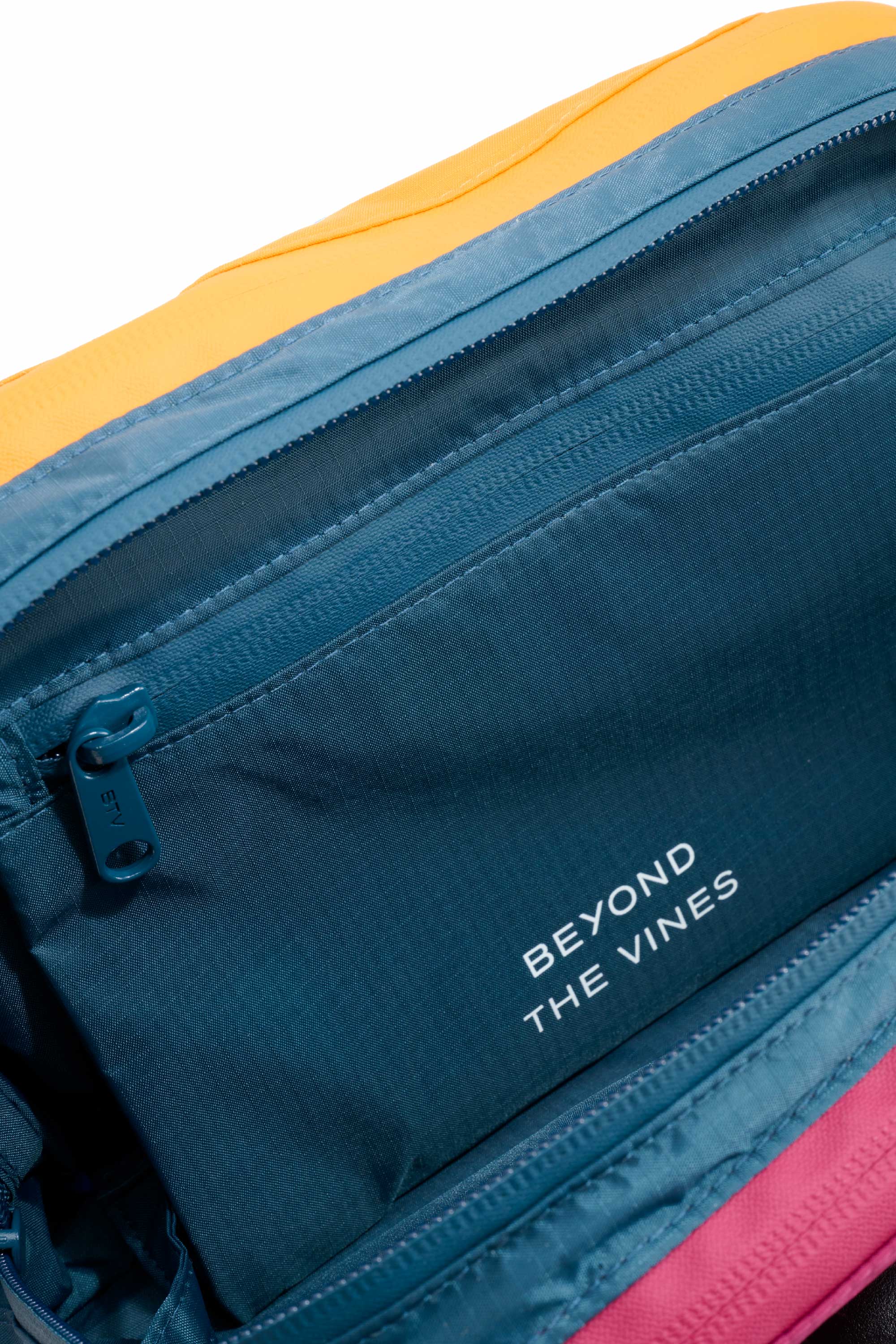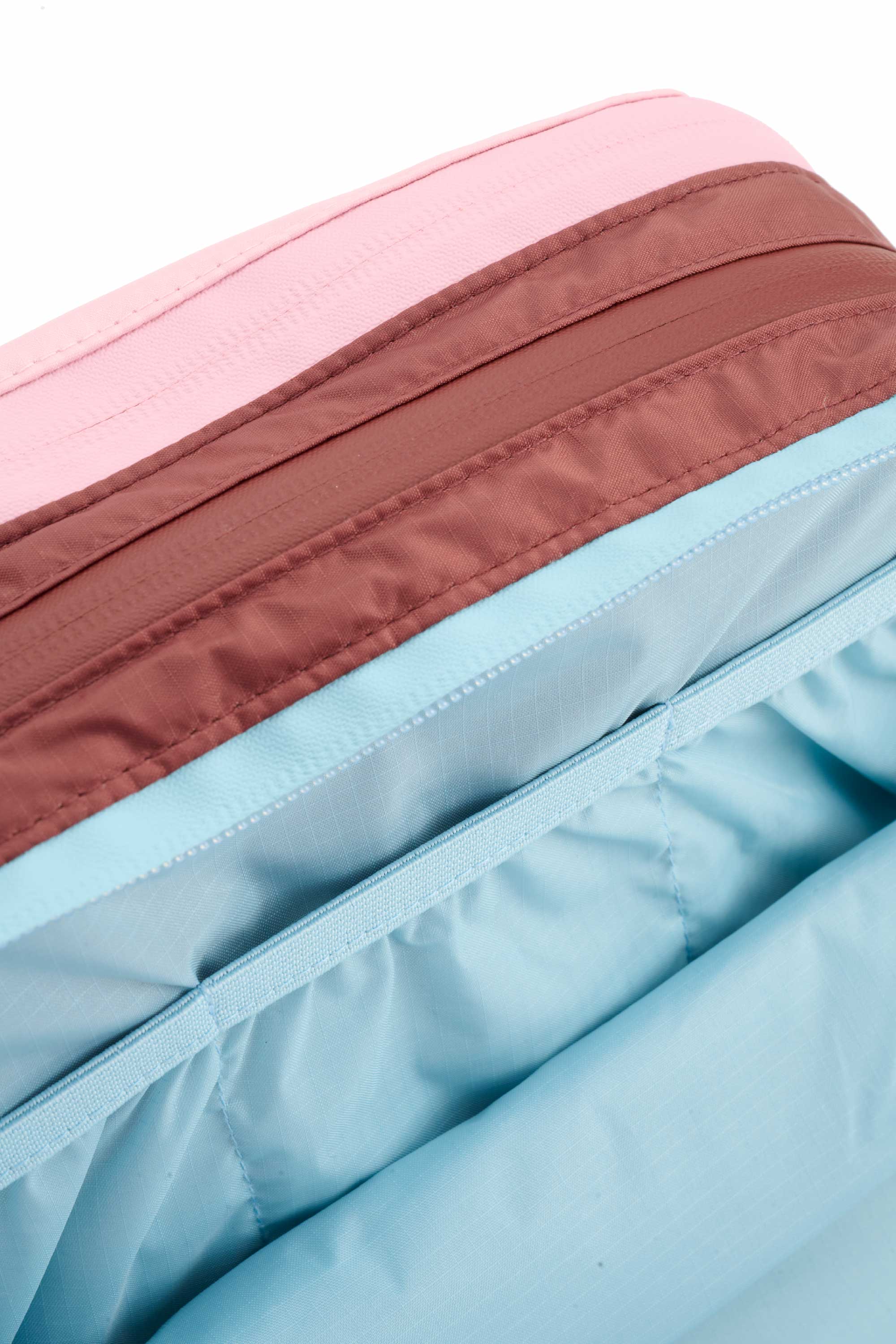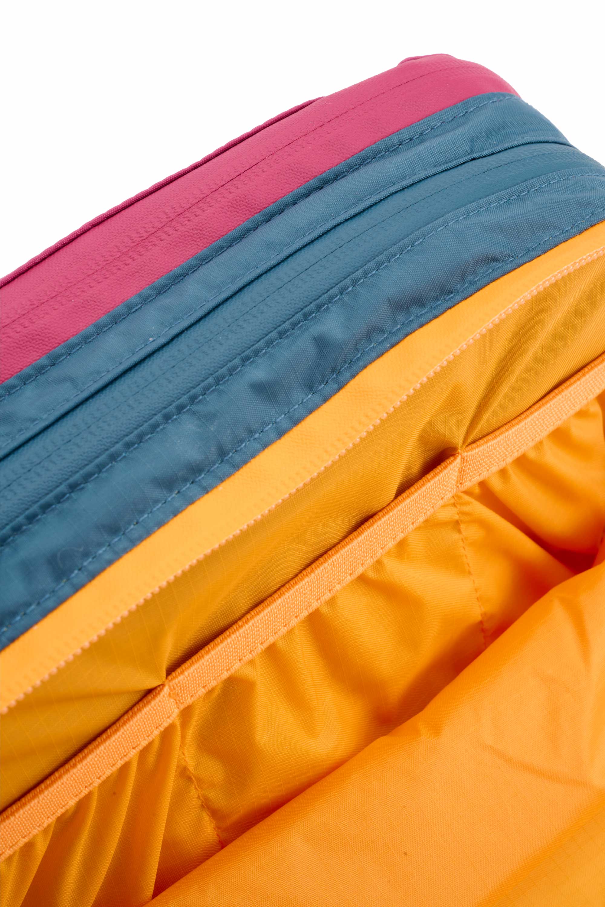Made with 100% recycled nylon, this colourblocked pouch is designed with 3 roomy zipper compartments and inner pockets to further organise your items. Lightweight and water resistant, this pouch also features waterproof zippers and a webbing handle. It is finished with an inner carabiner strap to attach your jewelry or keys to, an outer mesh zipper pocket on the back and a front rubber brand label.