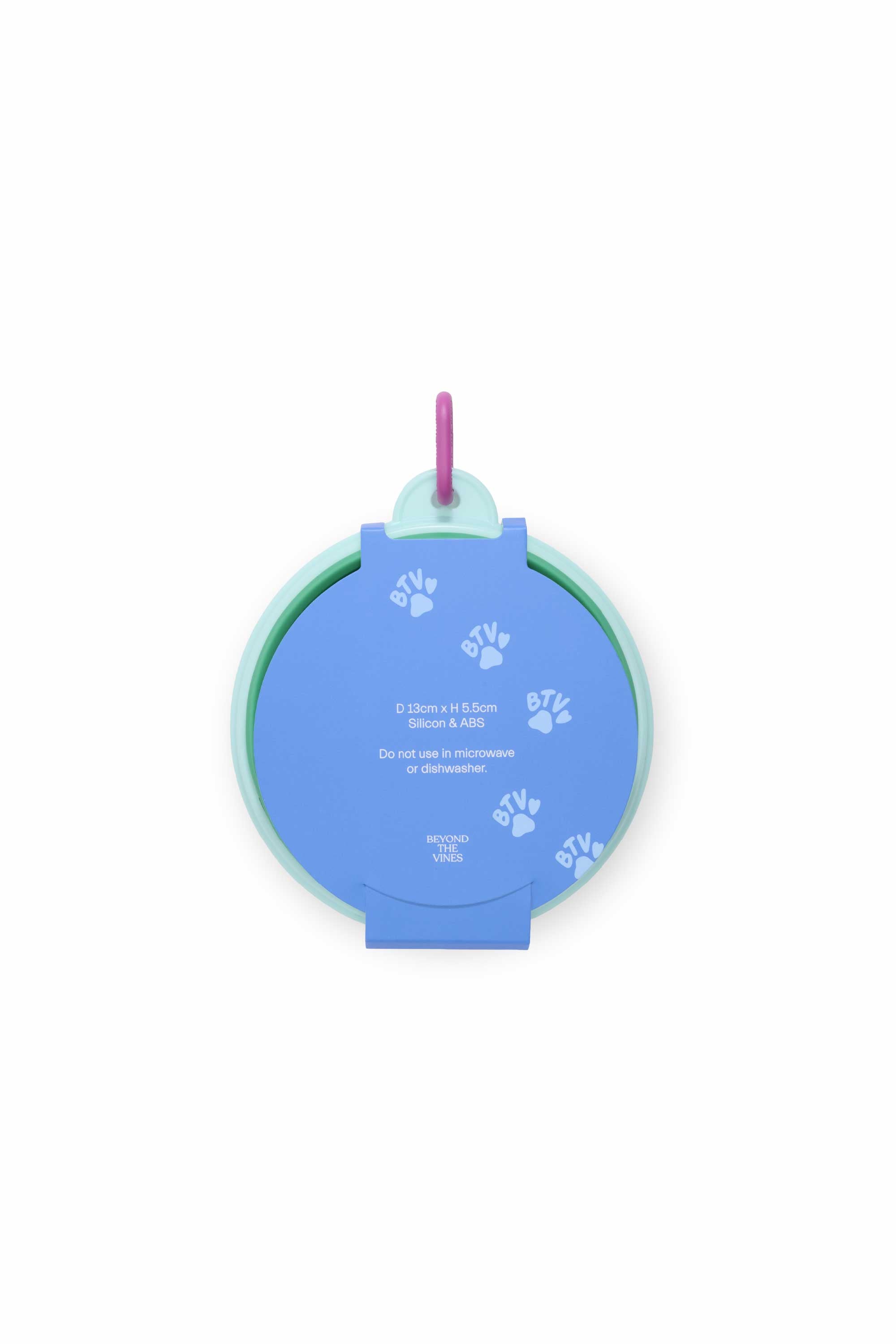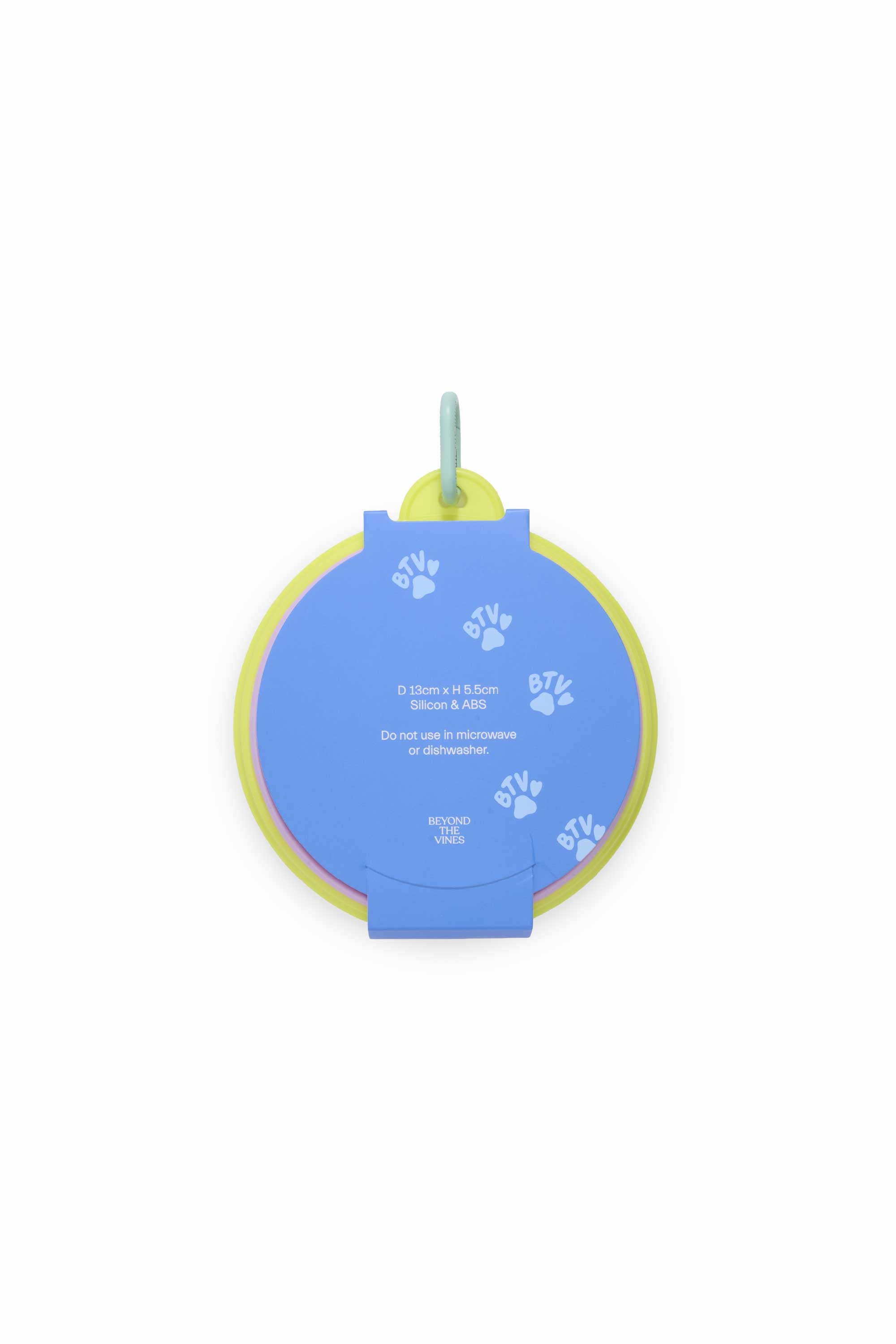 This colourblock collapsible bowl is designed for on-the-go convenience. Lightweight and easy to fold down, it features a D-ring attachment so you can hook it onto your bag or leash for quick access.