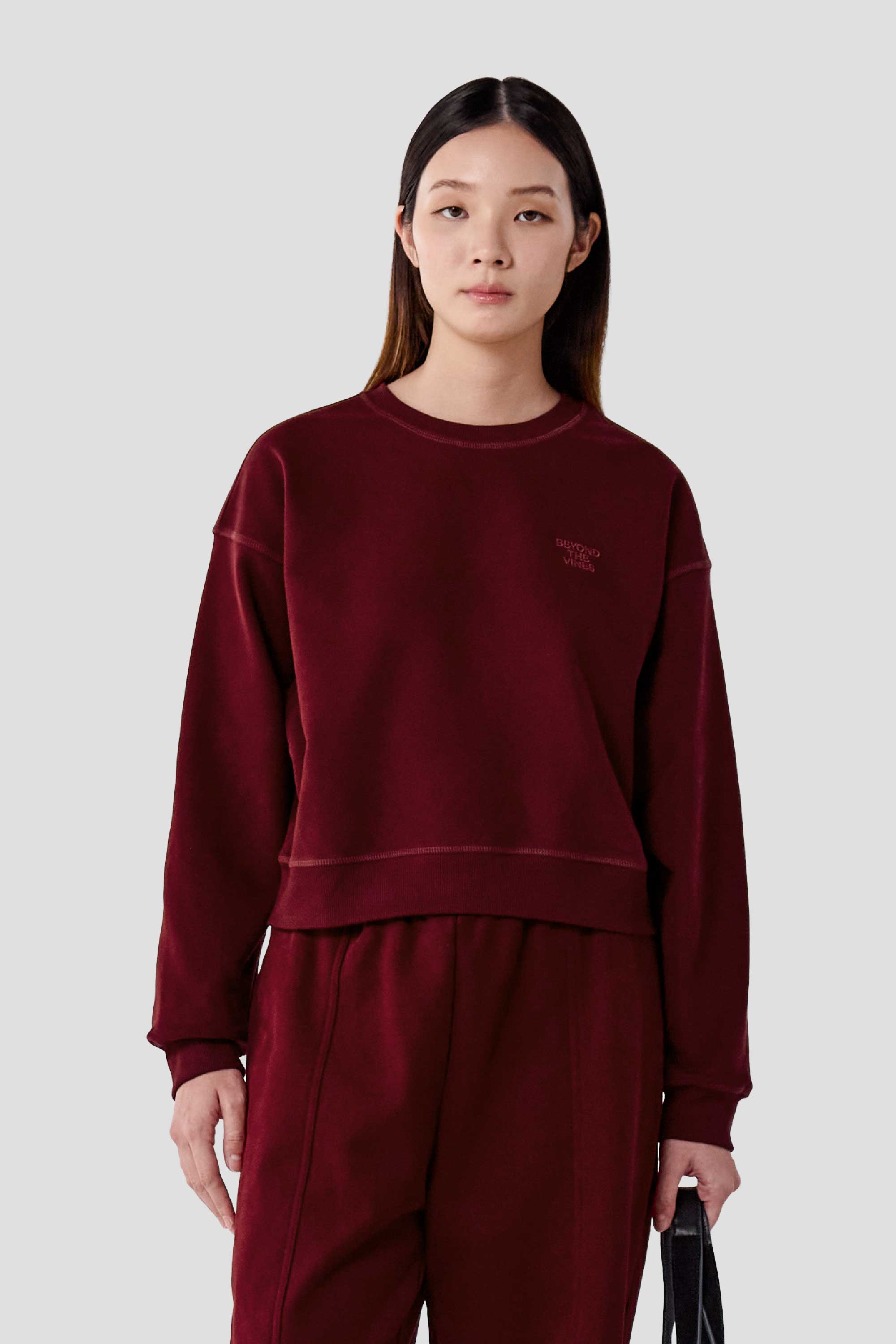 Made from smooth brushed jersey, this crew neck sweatshirt is designed for everyday ease. It features a relaxed, slightly cropped fit with ribbed edges and flatlock seam detailing throughout. The fabric’s soft brushed surface and terry underside provide both comfort and warmth, while an embroidered logo on the front adds a subtle touch of texture.