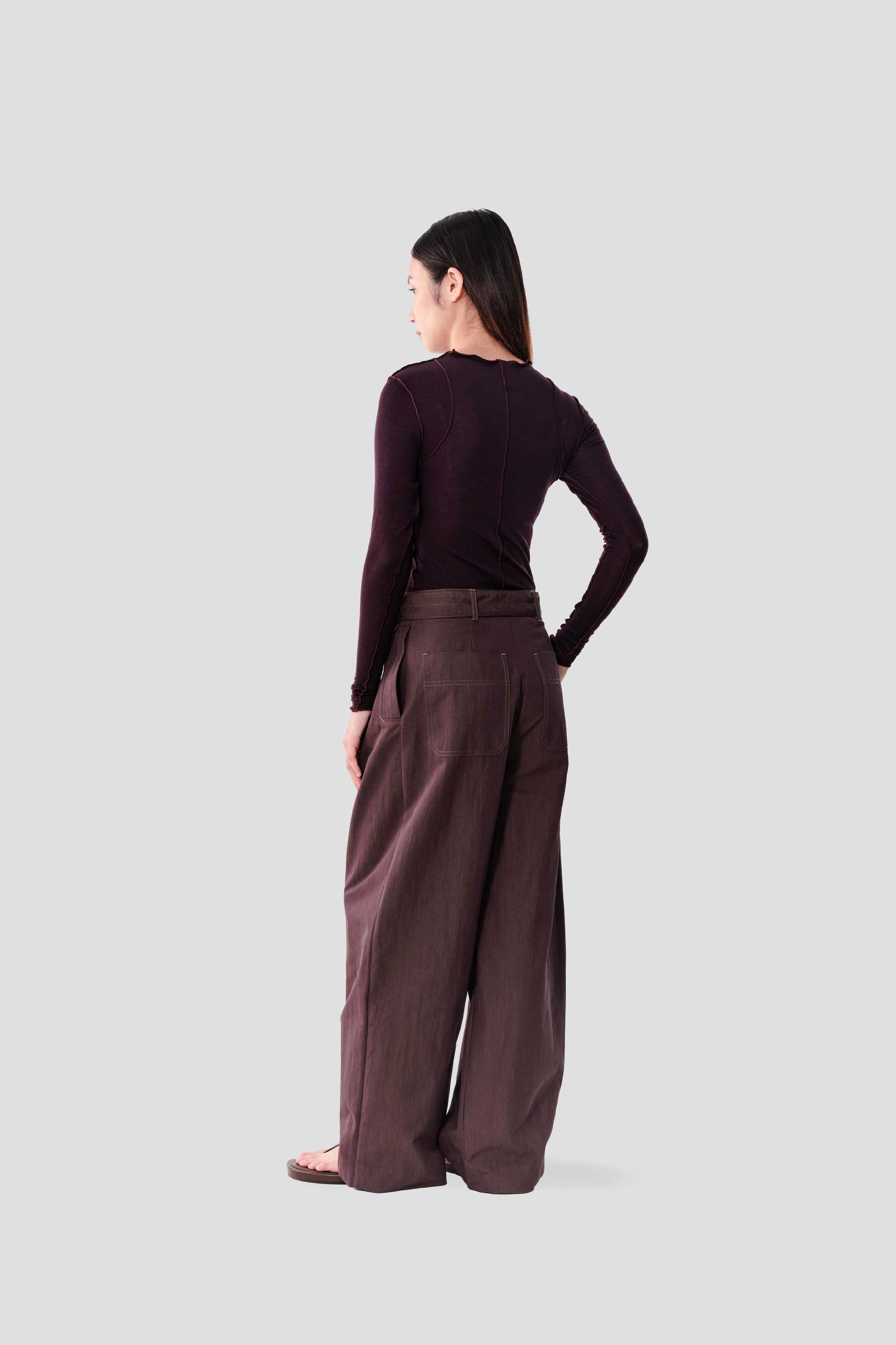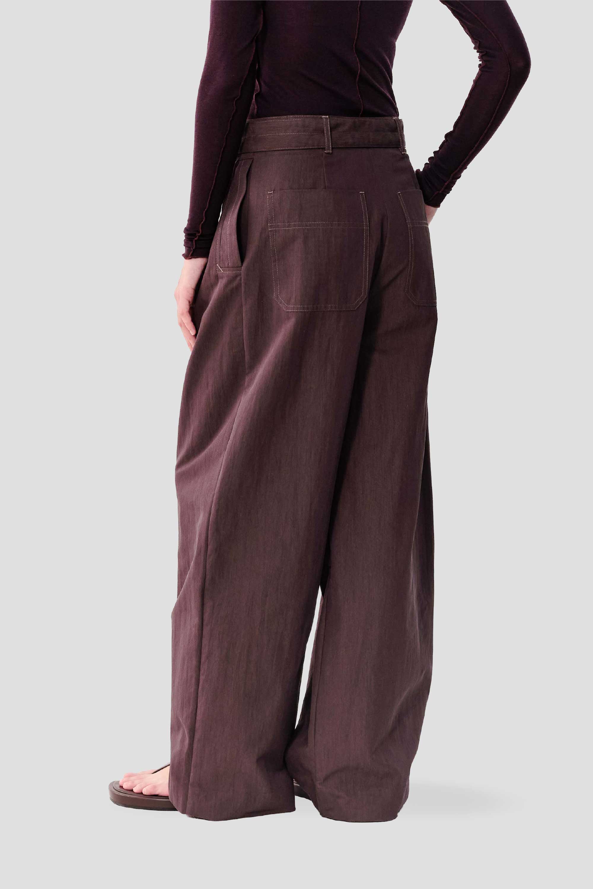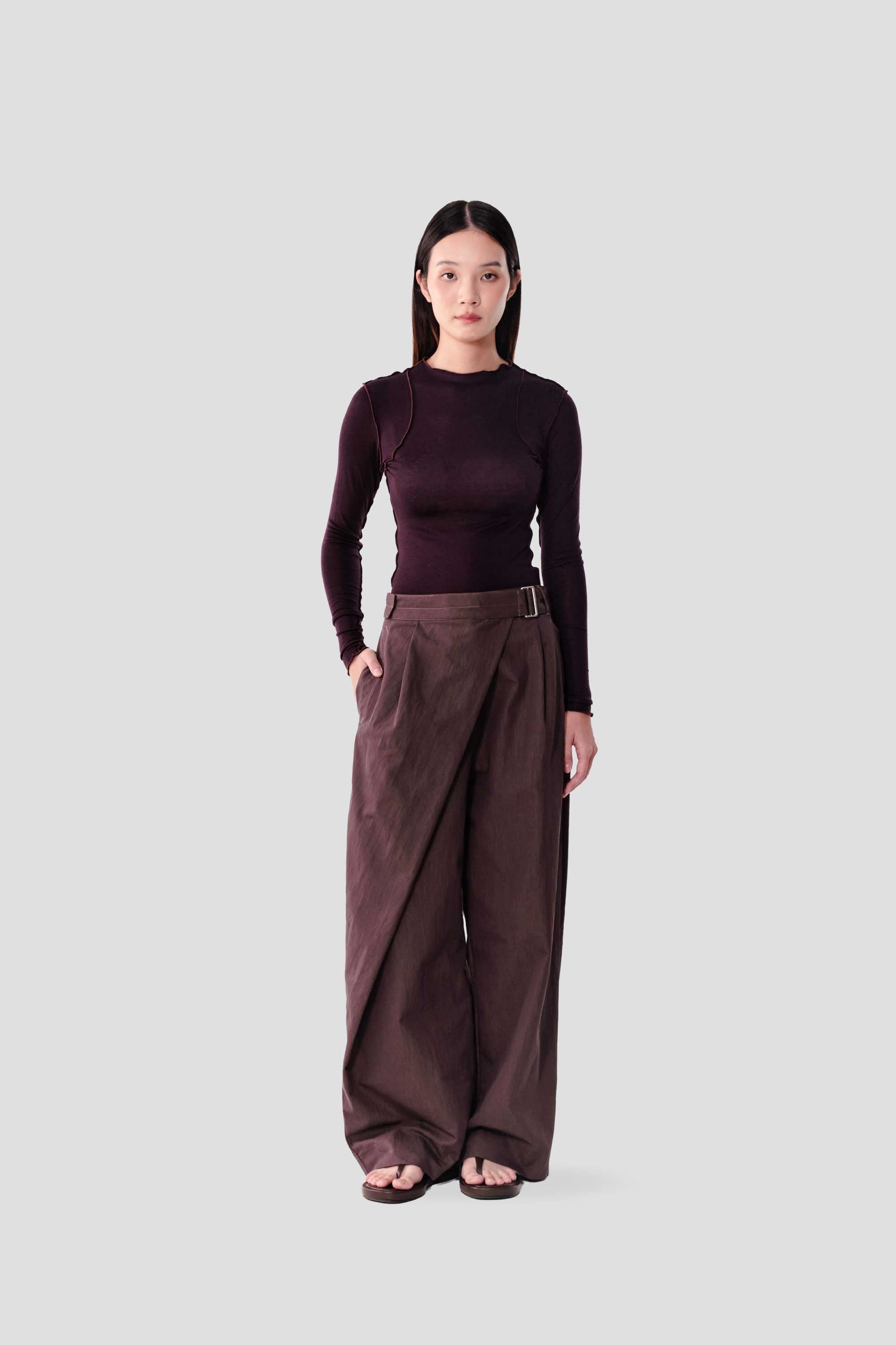 Crafted from smooth twill, the Front Wrap Trouser features a structured silhouette with an elevated, relaxed look. Designed with a wrap front and integrated belt detail, they are finished with subtle topstitching throughout. Cut to a full length profile, the style is complete with large welt side pockets and back pockets for functionality.